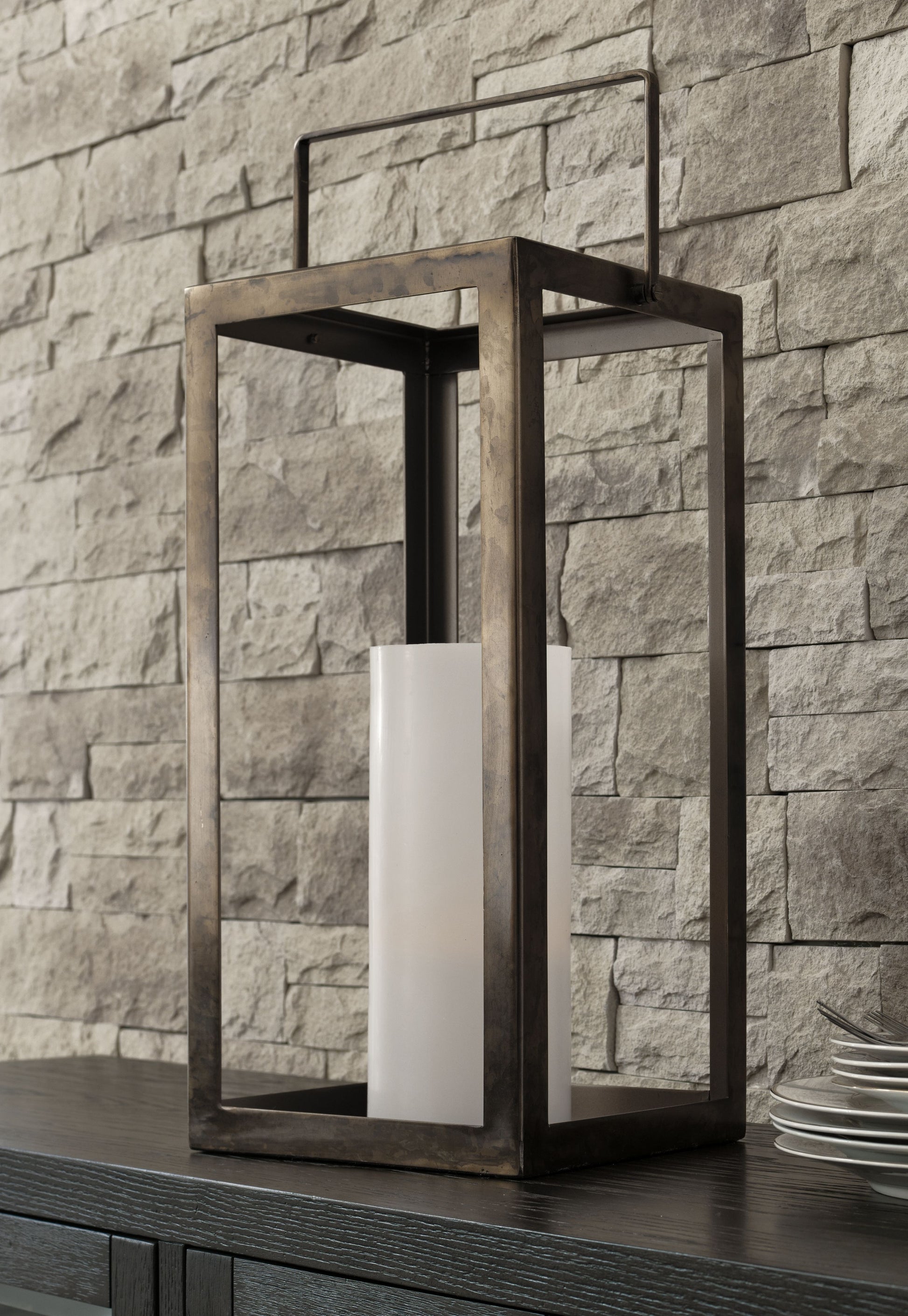 Add minimalistic style to your home with this linear lantern. Designed to hold pillar candles (not included), the sleek metal lantern casts a warm glow of candlelight that's perfect for any space. With an inspiring combination of design and functionality, this piece will accent your home for many years to come.