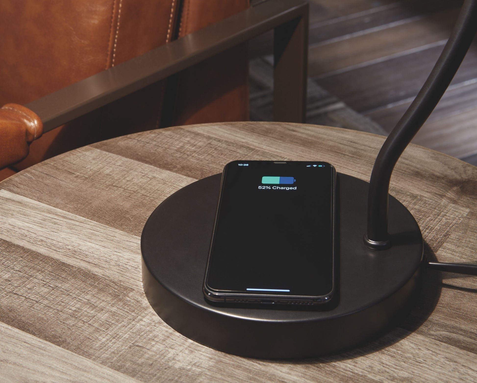 Don’t let lighting throw you for a loop. The beautiful curve of this lamp will add the right contour to your space. With a classic finish, the arc of this lamp ends with an adjustable metal shade. The integrated wireless charging and USB port add a convenient way to keep your devices powered.