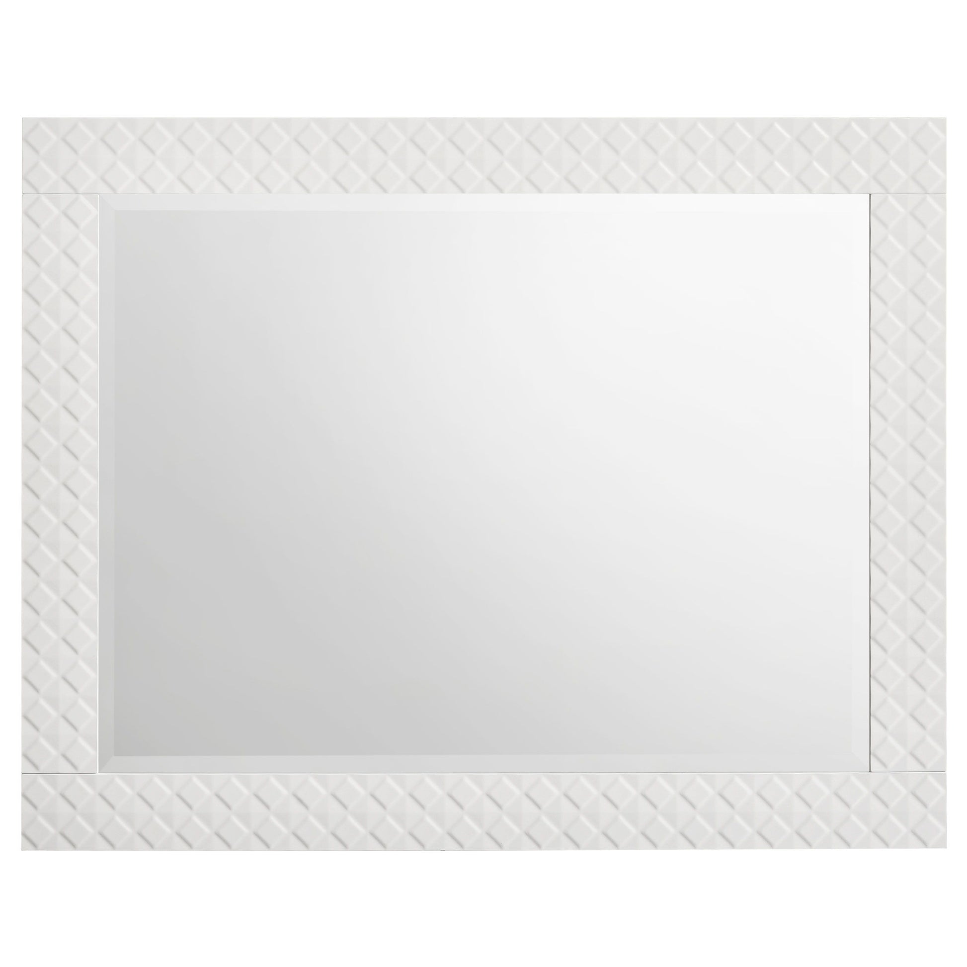 Complete your dresser with this elegant mirror, designed to enhance the modern aesthetic of your bedroom. The high gloss finish and 3-dimensional diamond tile emboss perfectly complement the dresser, creating a cohesive look. This mirror features a sturdy frame crafted from solid materials, ensuring both style and durability. Its generous size offers ample reflection, making your space feel larger and brighter. This mirror is the perfect finishing touch to elevate your bedroom decor.