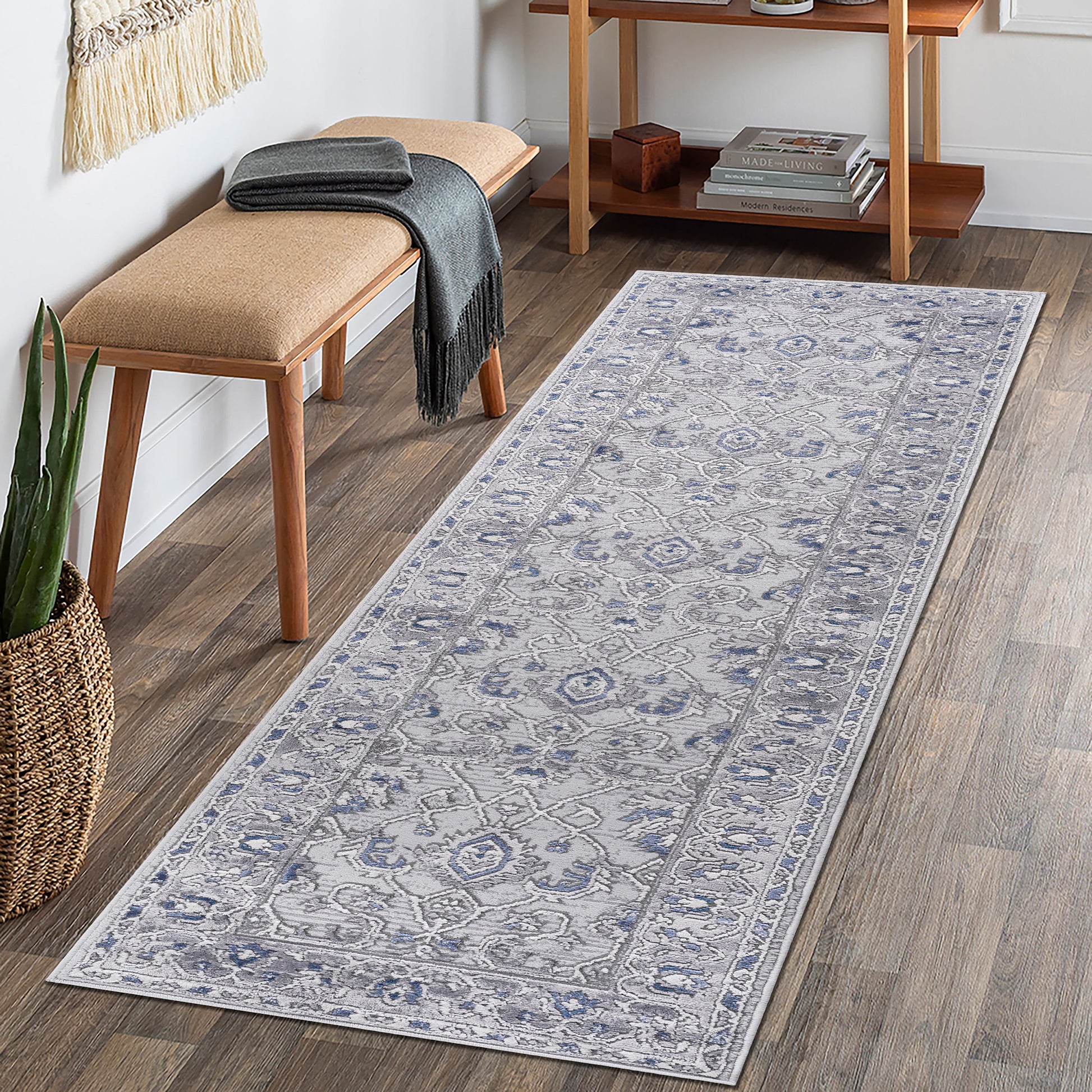 Marfi - 2' x 8' Oriental Non-Shedding Living Room Bedroom Dining Home Office Stylish And Stain Resistant Area Rug - Gray / Blue