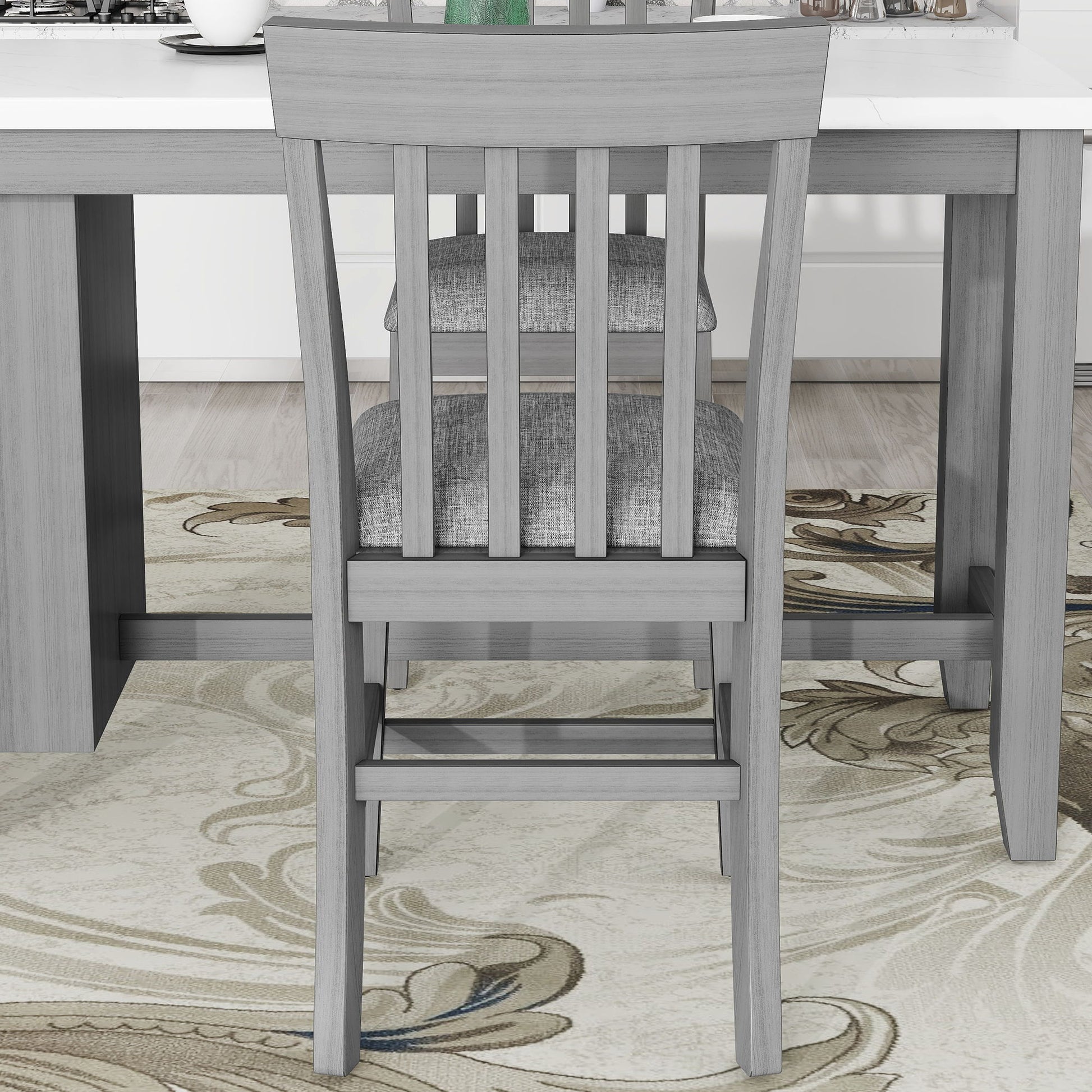 - Comfortable Counter Height Chairs: Upholstered in foam-cushioned fabric, the chairs offer maximum relaxation with a slatted back design and sturdy rubber wood legs, enhancing the overall aesthetic.