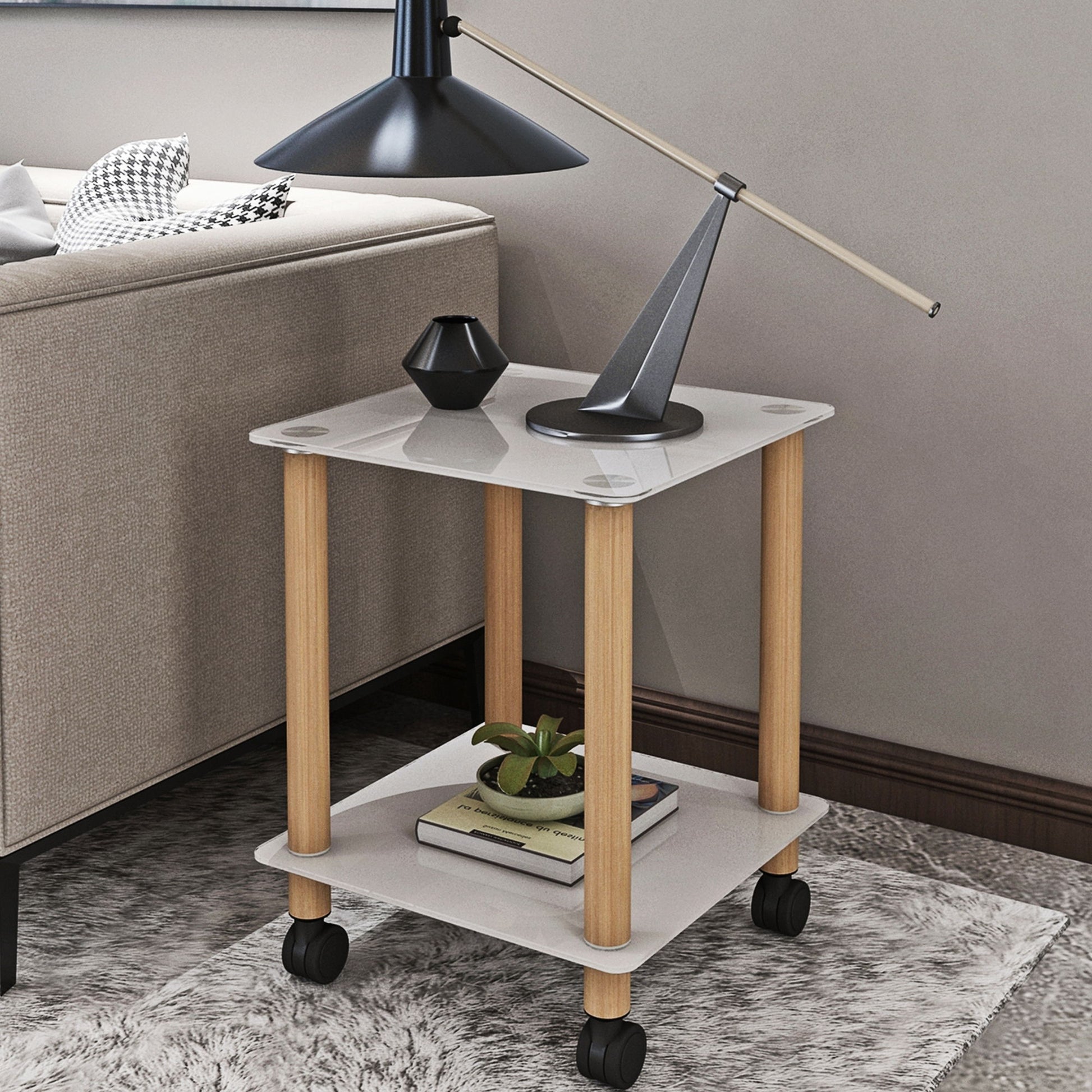 Side Table, 2 Tier Space End Table, Modern Night Stand, Sofa Table, Side Table With Storage Shelve - White / Oak