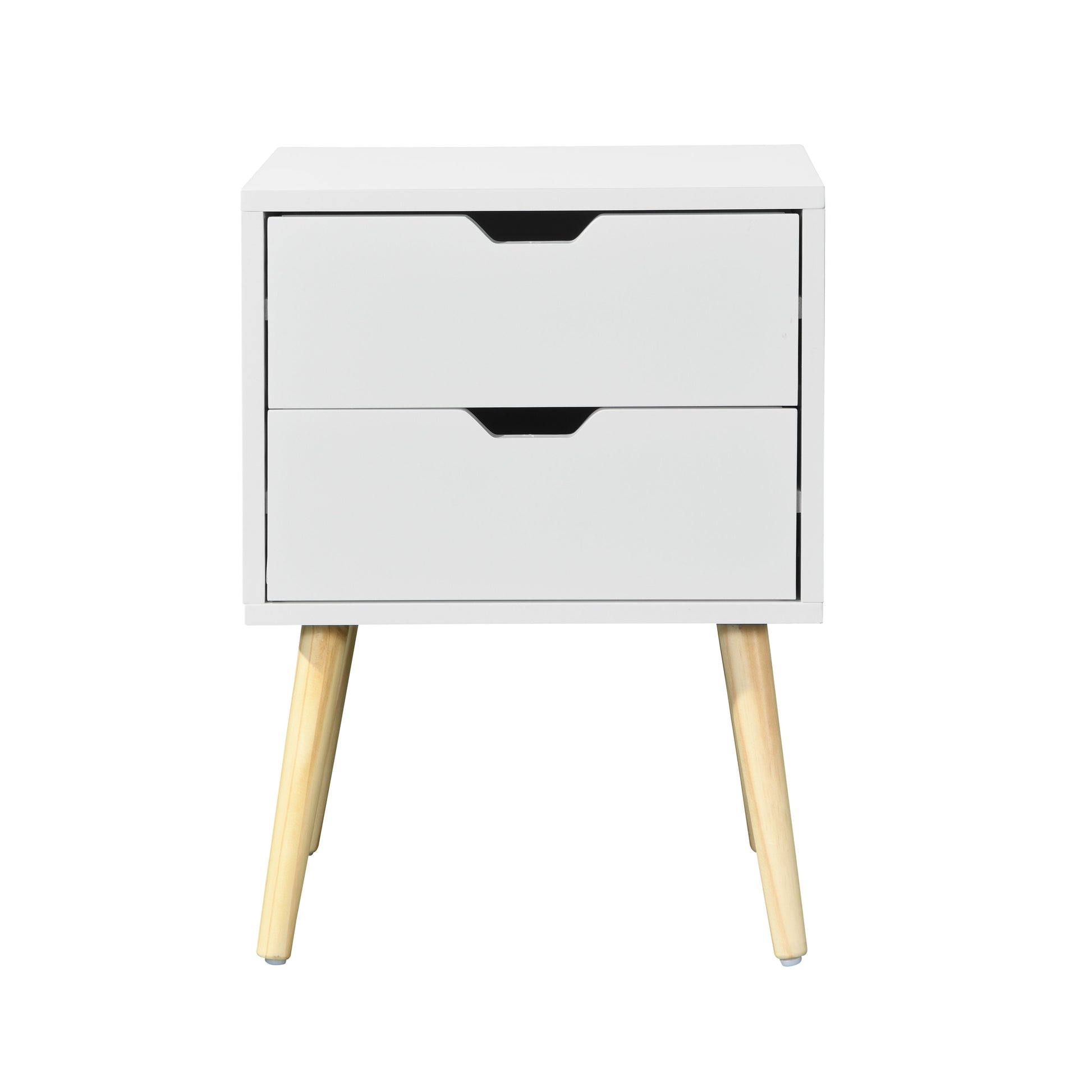 Side Table With 2 Drawer, Mid-Century Modern Storage Cabinet For Bedroom - White