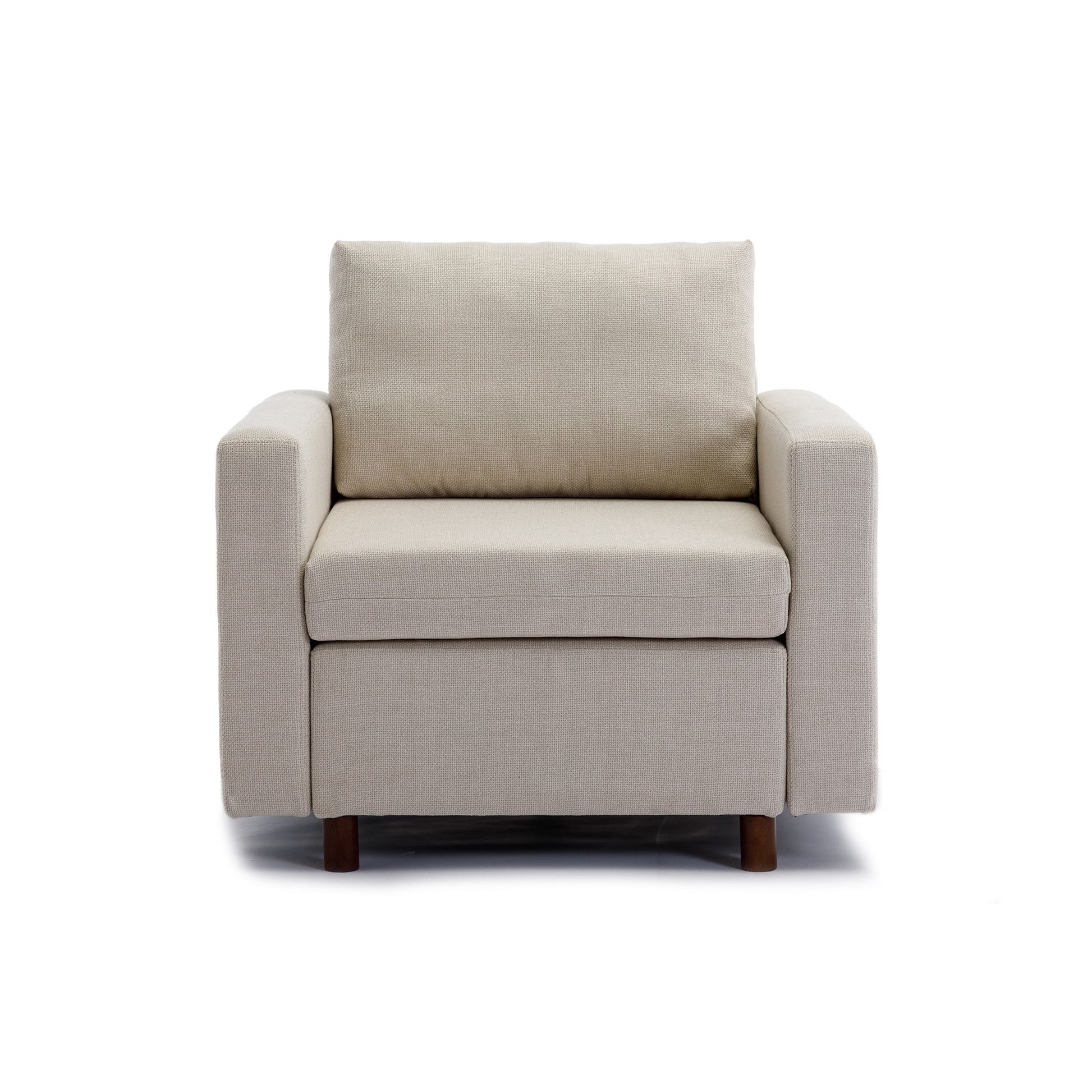 Single Seat Module Sofa Sectional Couch, Cushion Covers Non-Removable And Non-Washable, Linen Fabric And Comfy Cushion Wood Legs - Brown