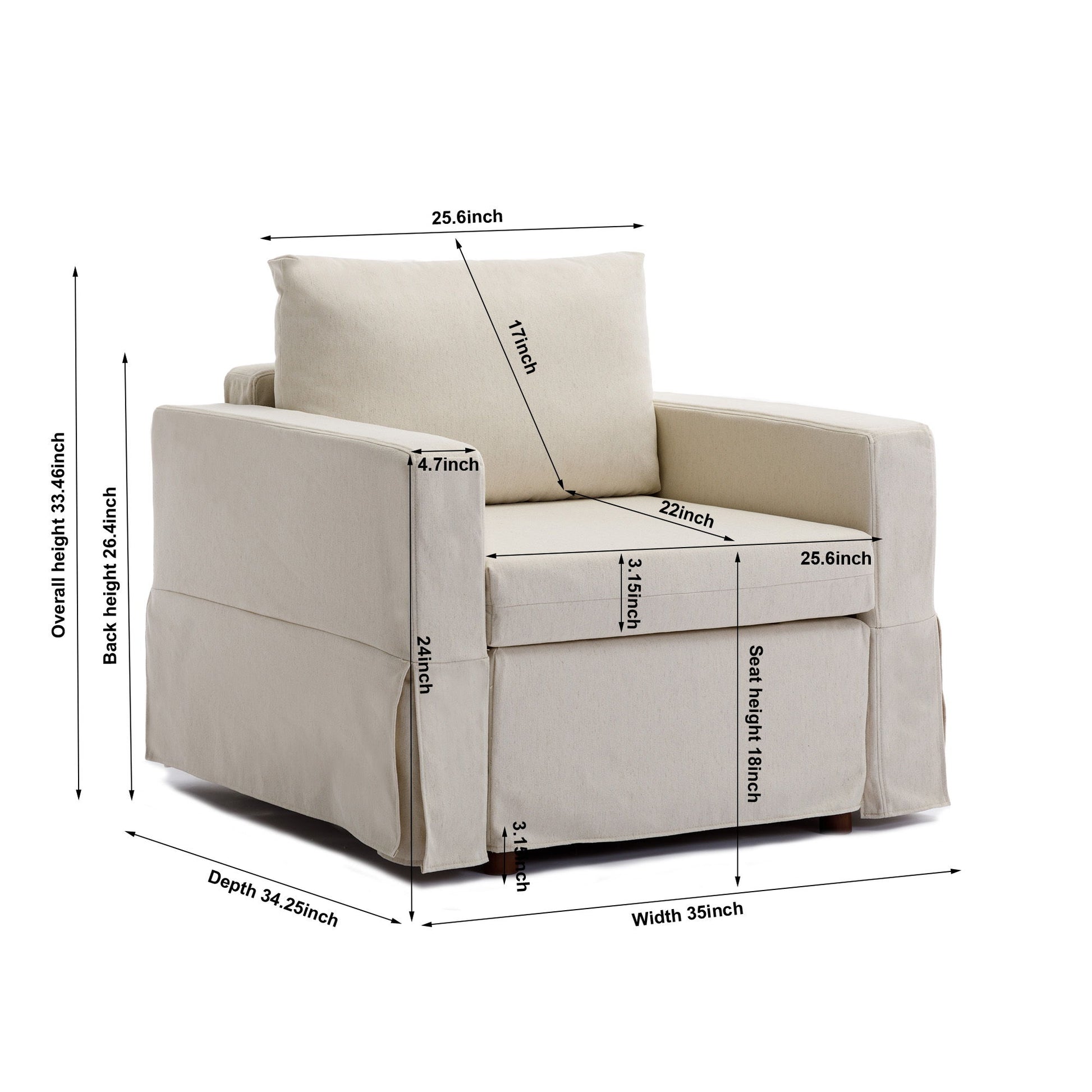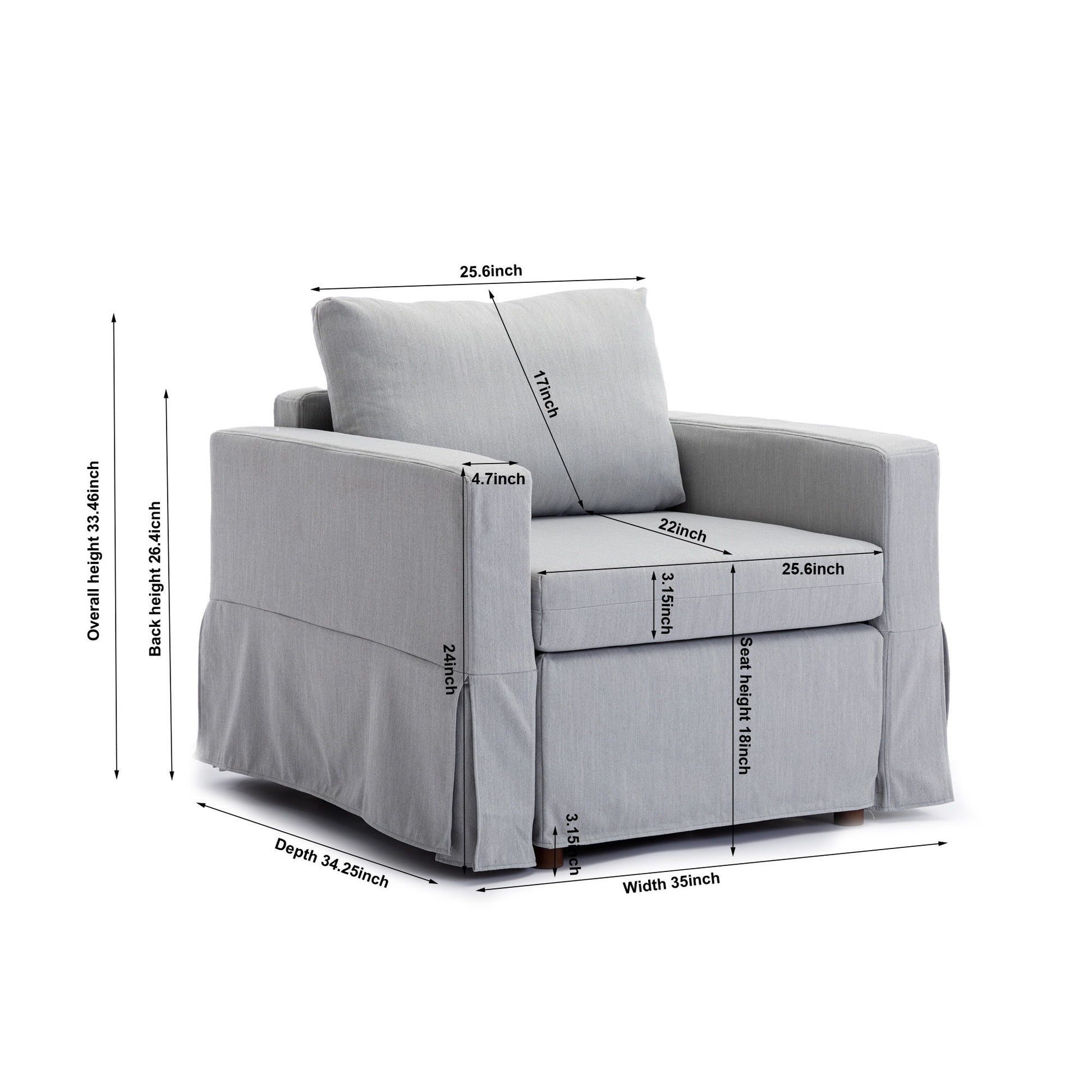 High Quality Fabric: The linen seat cover is high quality, soft, smooth, and elegant. Upholstered with high elasticity sponge for pressure relief on hips. Elegant Appearance: Simple design blends with modern decor, adding a stylish touch to any home or workspace. Modern color for an updated look. Removable & Washable: Back pillows have zip-off covers, seat and back cushions are easily removable and washable for convenient cleaning and stain removal. Easy Installation: Sofa can be easily installed with provided connectors in minutes. Includes tool and explanatory note for hassle-free assembly.