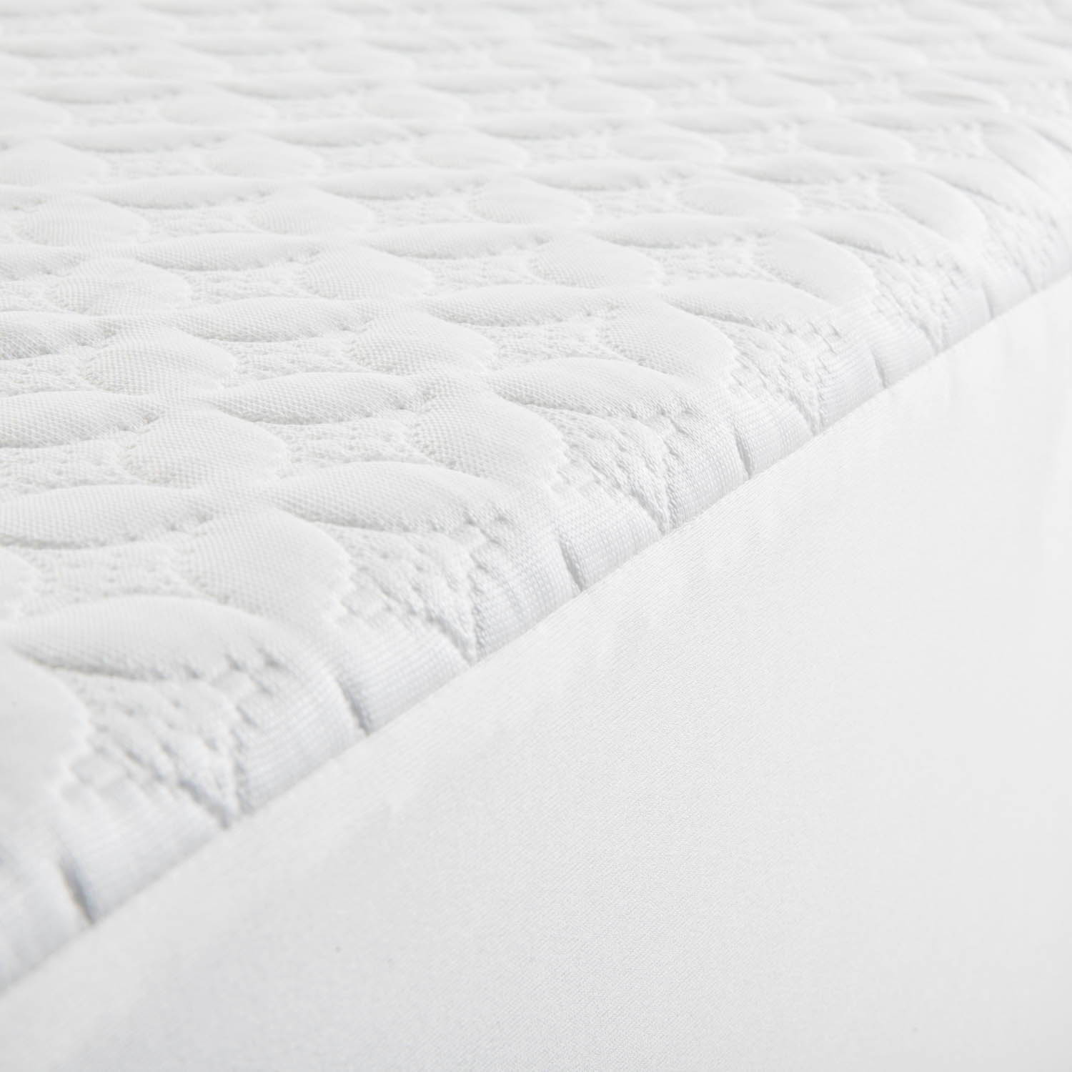 The Five 5ided® IceTech™ Mattress Protector offers reliable waterproof protection and cooling technology. Innovative IceTech™ fabric continually dissipates body heat for a comfortable sleep climate. The lab-certified H2Pro® barrier protects the top and sides of mattresses from fluids, stains, dust mites and allergens while allowing air to permeate for comfortable breathability. Fitted protector has a Universal Fit™ design with deep pockets and a premium 1.5" elastic in the skirt hem for a smooth, secure fit on mattress depths from 6" to 22".