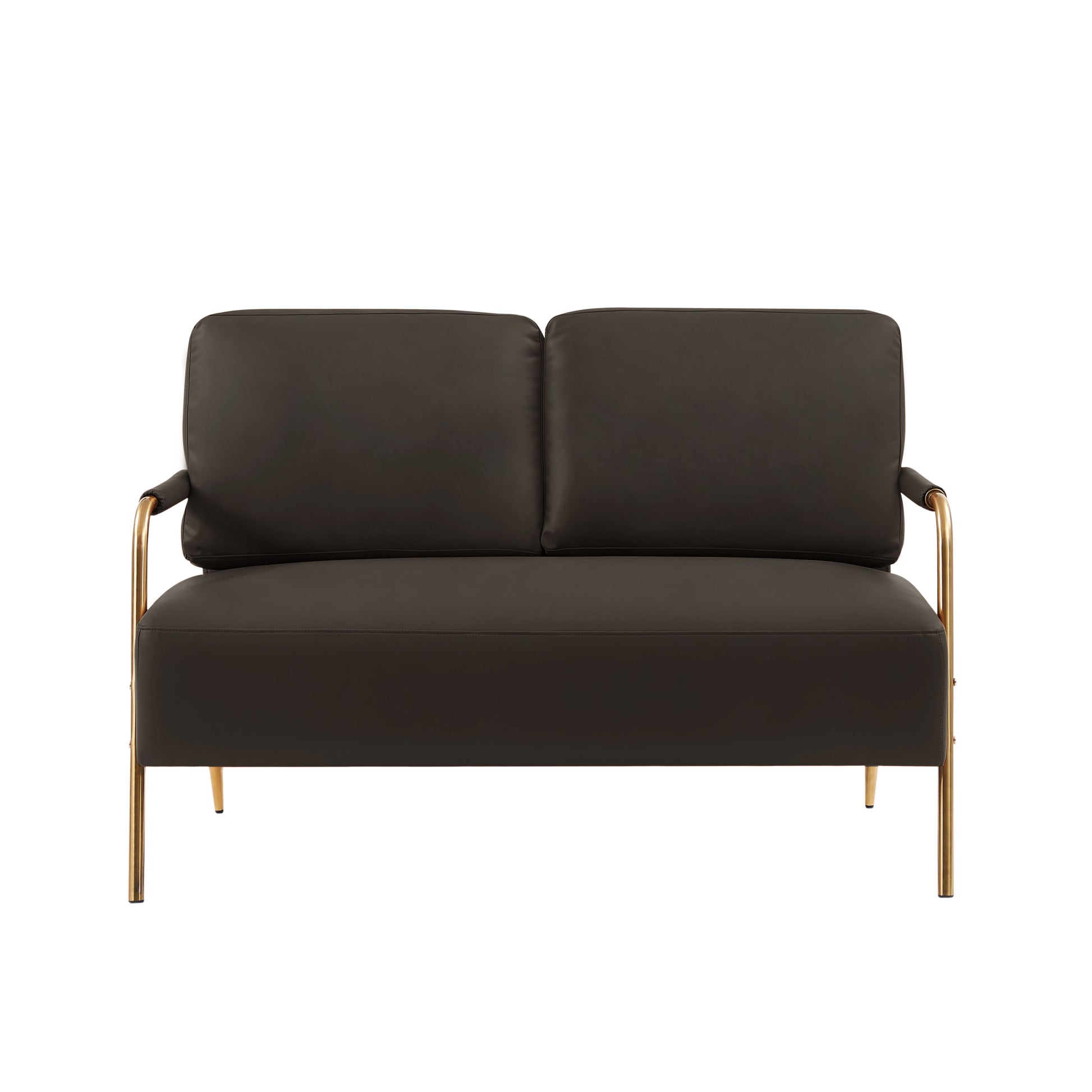 Small Sofa Seater Pet Friendly Fabric Upholstered Loveseat 2-Seater Couch With Removable Back Cushion And Metal Leg, Modern Couches For Small Spaces Living Room, Bedroom, Apartment - Brown