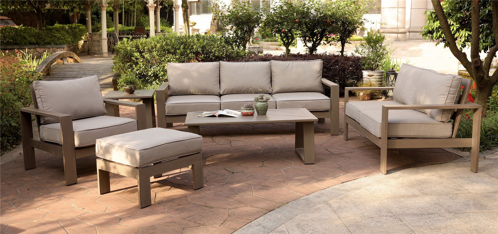 - All-Weather Comfort: Cushions are covered with 100% solution-dyed Olefin fabric, providing comfort in any weather condition.