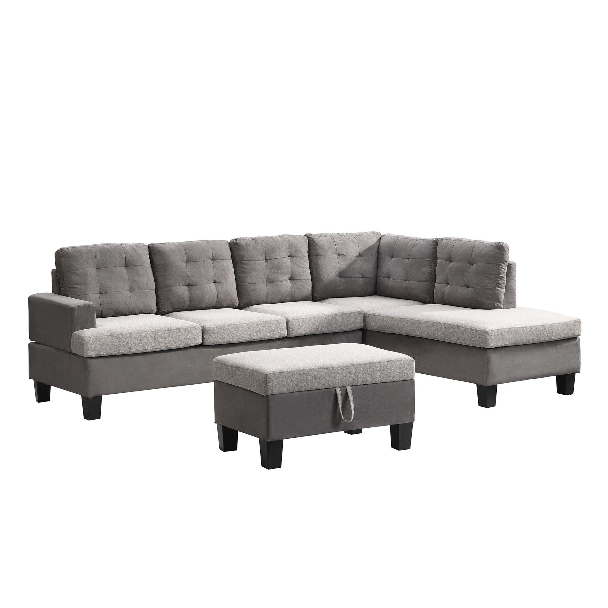 Sofa Set With Chaise Lounge And Storage Ottoman - Gray