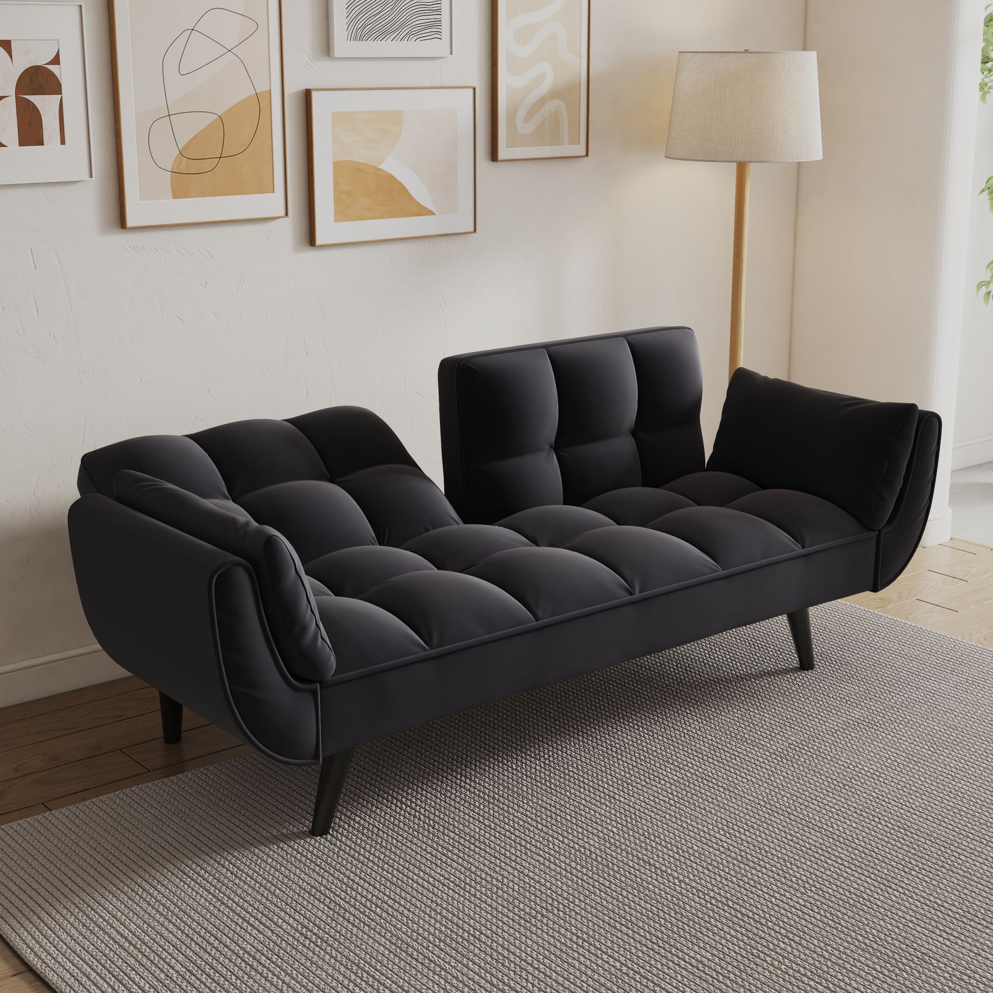 Comfortable Clustered Back and Seat: Well-distributed stitching enhances comfort, making this multifunctional sofa bed perfect for small spaces like apartments or studios. Convertible into a Bed: Easily transform the sofa into a comfortable bed by putting down the back, ideal for accommodating overnight guests. Adjustable Postures for Versatile Comfort: Enjoy 3 adjustable postures for different levels of comfort, whether watching TV or taking a nap, meeting varied lifestyle needs. Simple Assembly Design: Effortlessly assemble the sofa by attaching the legs, ensuring quick and easy setup for your convenience.