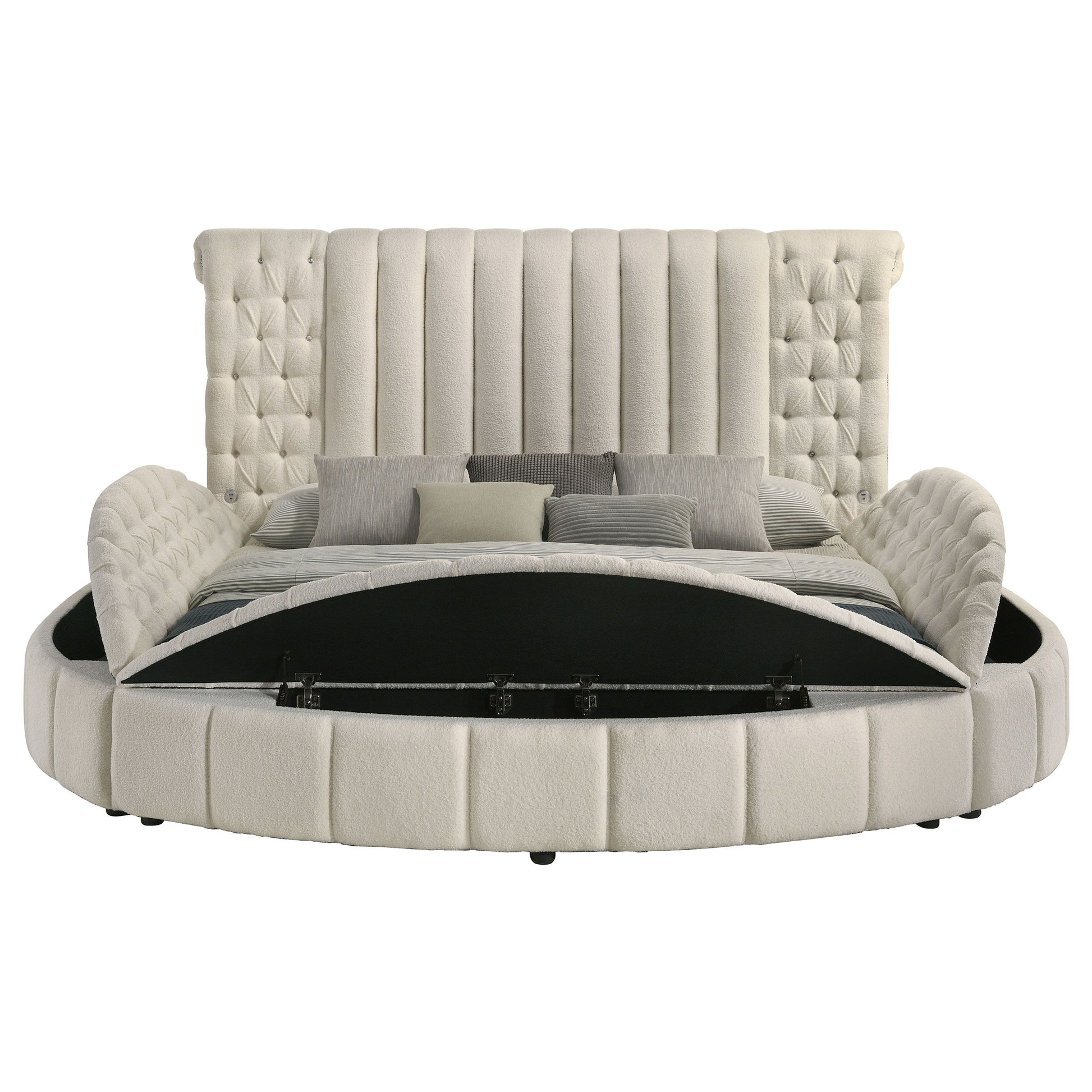 Sonya - Upholstered Queen Round Storage Bed - Ivory