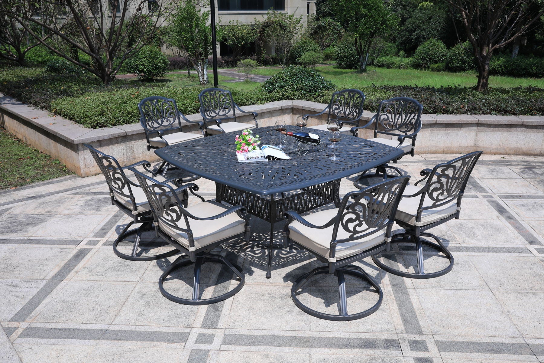Square 8 Person 64" Long Aluminum Dining Set With Cushions With Swivel And Rocking Chairs - Dark Gray / White