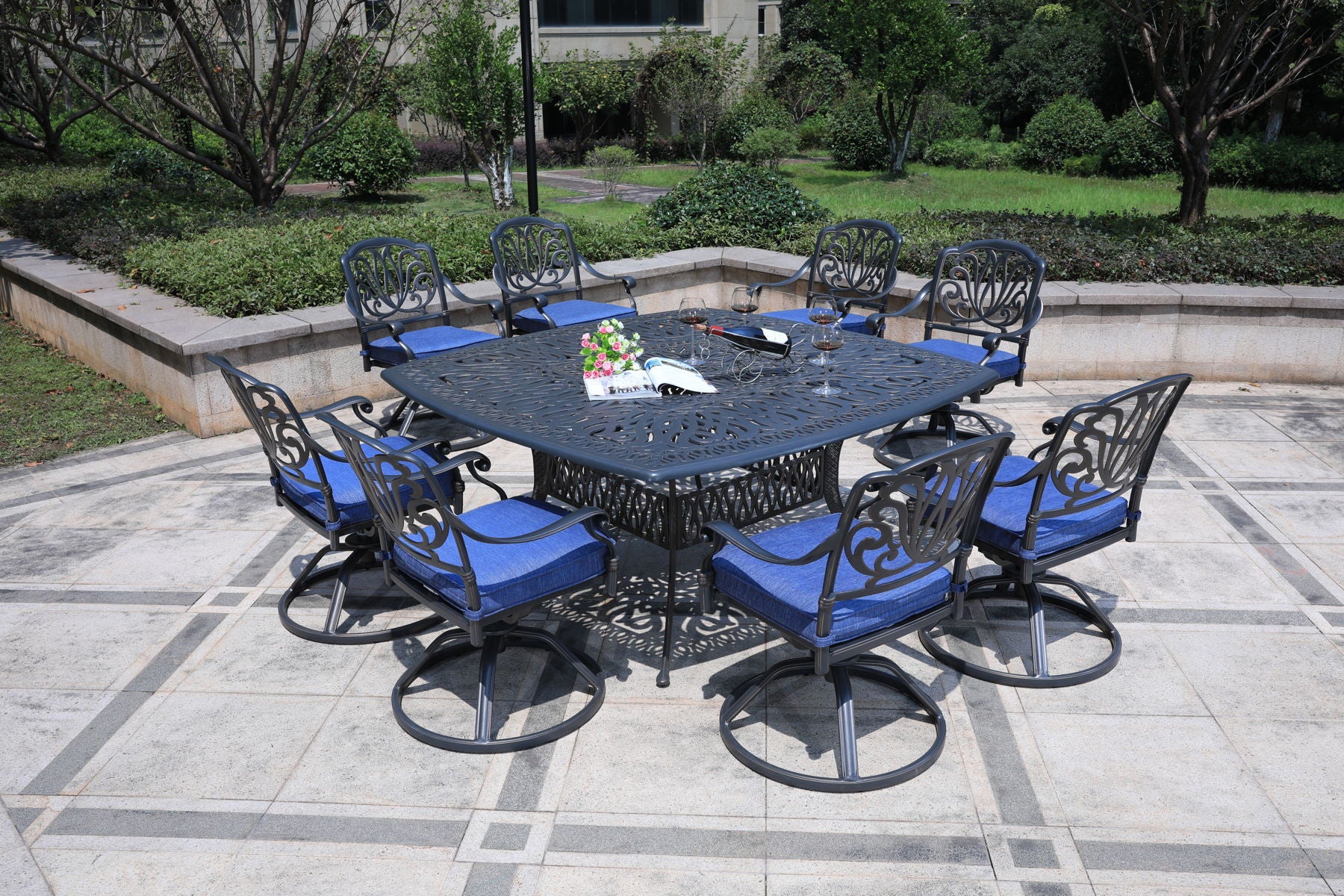 Square 8 Person 64" Long Aluminum Dining Set With Cushions With Swivel And Rocking Chairs - Gray / Navy