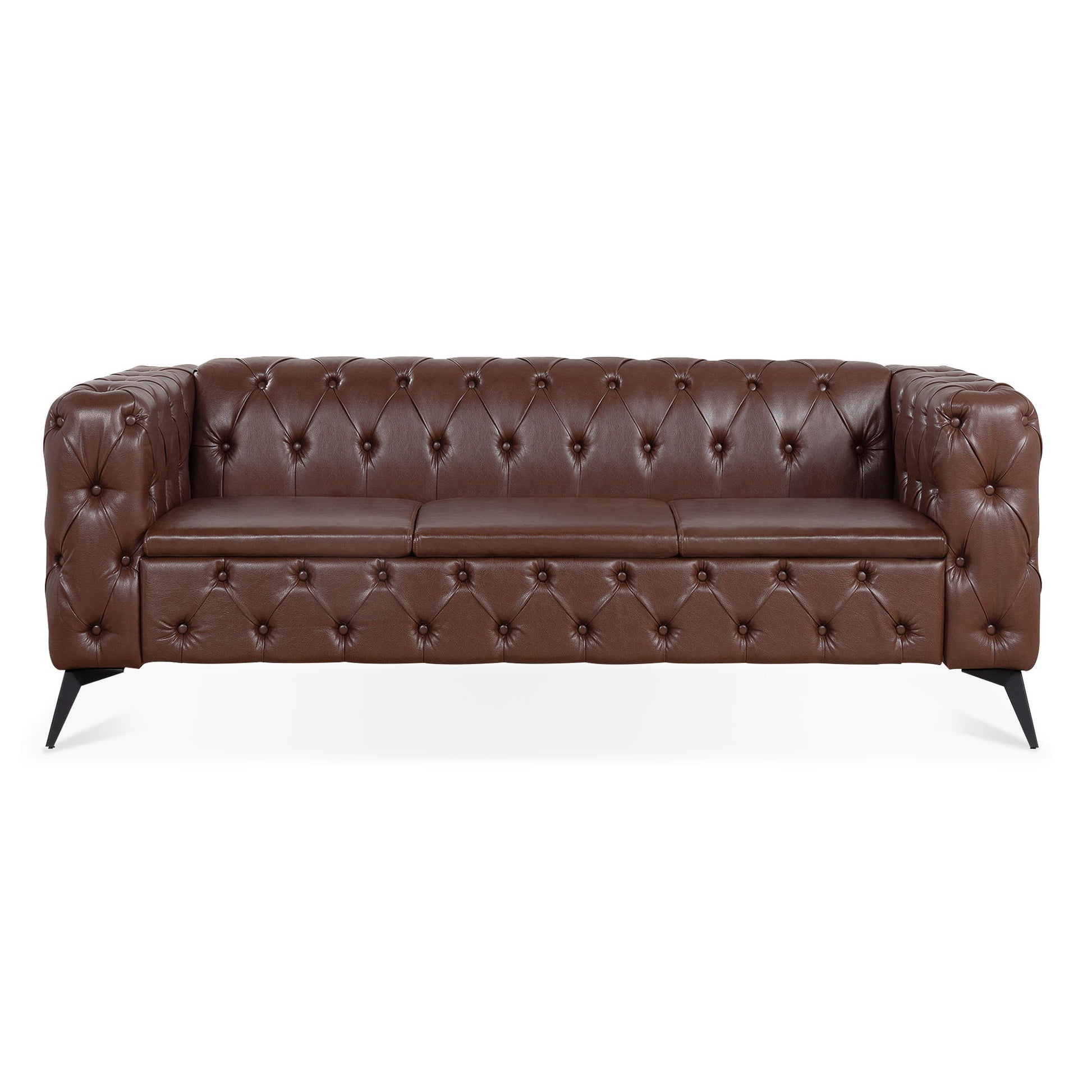 Refined Modern Design: Features an overall pull point design that adds refinement and modern touch. The pull point on the back serves as a decorative element, even when not against the wall. Comfortable Seating: Independent spring pack under the seat cushion and a single cushion design ensure full comfort for anyone sitting on this three-person sofa. Novel Iron Foot Support: The sofa is supported by iron feet with a unique diagonal design, adding a contemporary touch to the overall look. Classic Sled Appearance: The sofa features a classic sled design, blending timeless style with modern comfort.