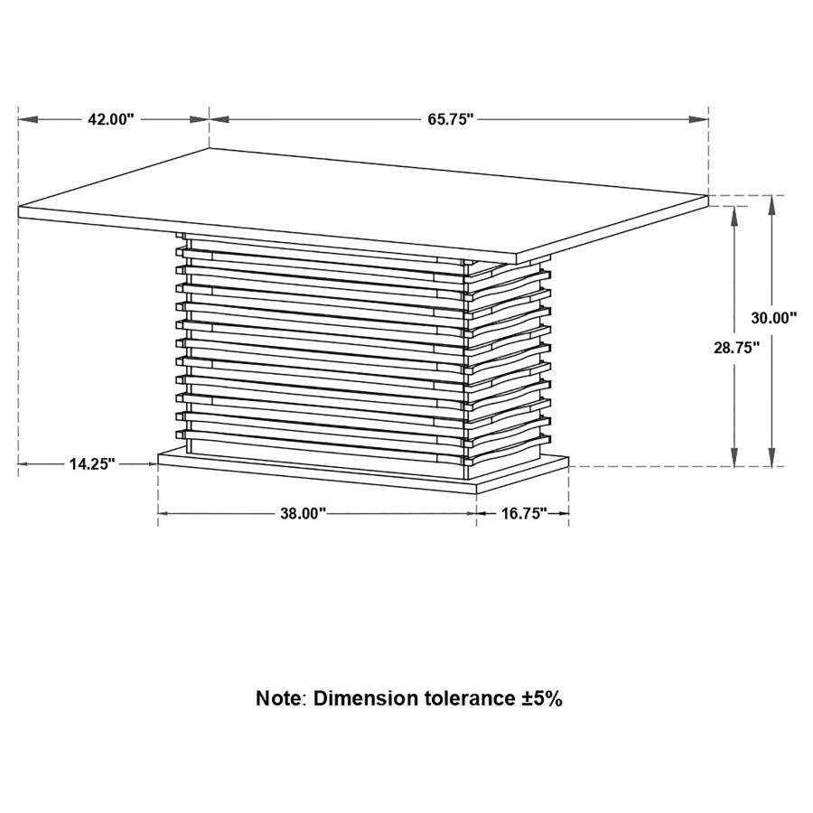 This striking wood dining table from the Stanton Collection adds charisma to your casual dining room. The table is made from ash veneers and features a contemporary wave design on a square column base finished in a rich black. With different chair options to choose from, the overall look and feel are up to you. This everyday dining table is the consummate gathering place for you and your loved ones to enjoy great meals and good times. A matching server with cabinets and shelving for ample storage of extra dinnerware and silverware would be an excellent accoutrement.