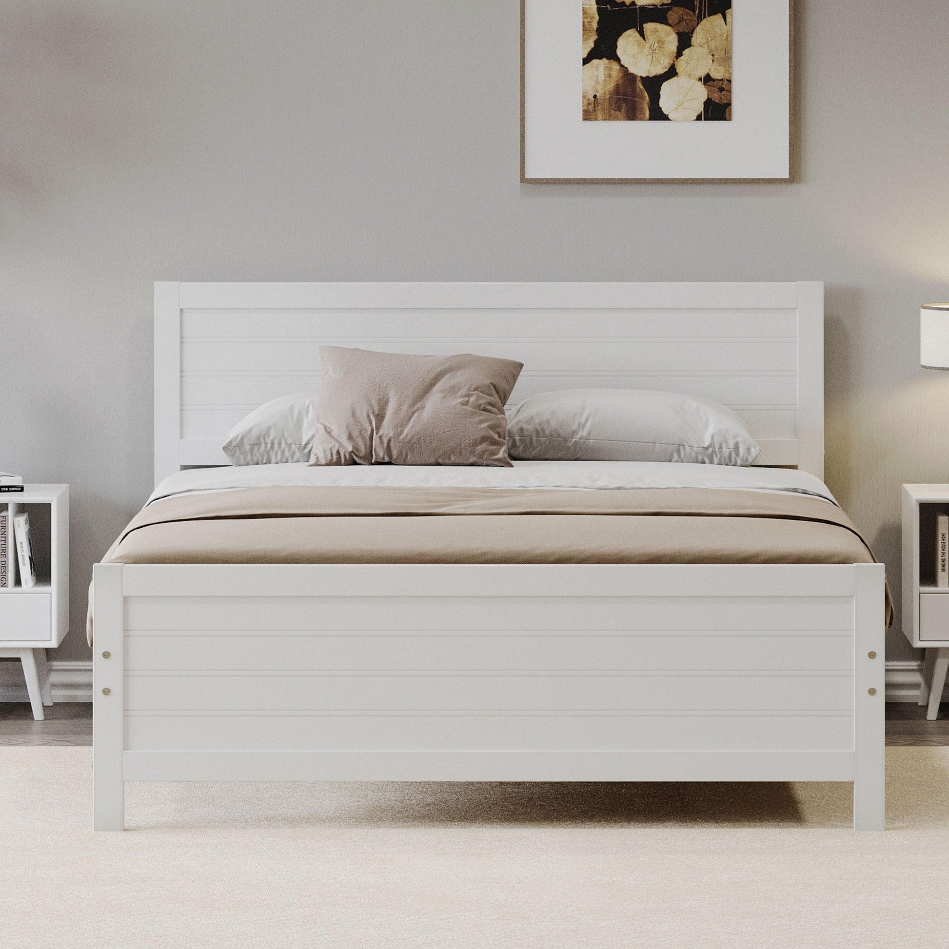 King Size Wood Platform Bed Frame With Headboard, Mattress Foundation With Wood Slat Support, No Box Spring Needed - White