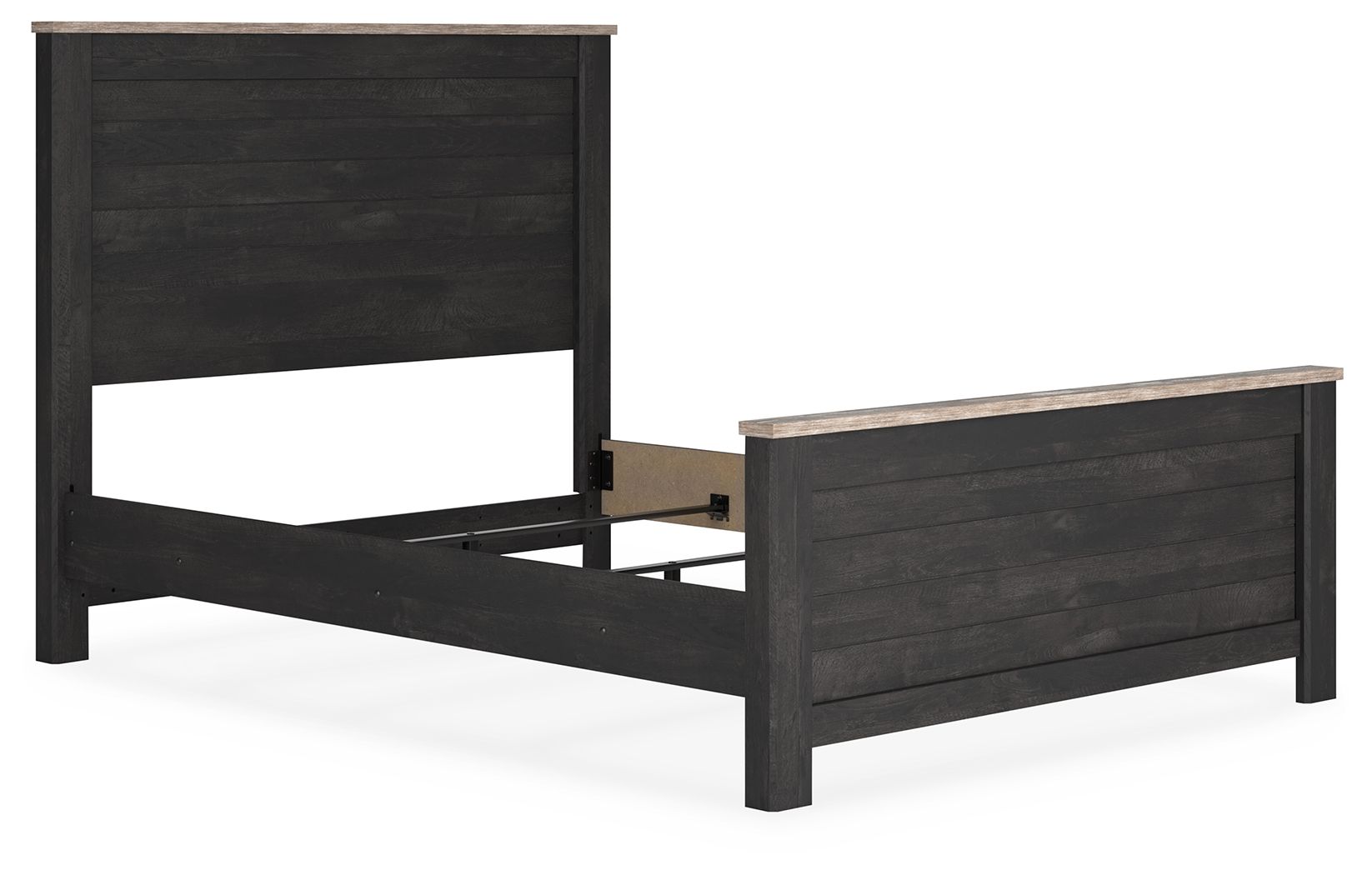 Charming French farmhouse aesthetics. Deep, industrial-inspired hues. This queen panel bed balances beautiful simplicity with the luxurious details of yesteryear. The distinct two-tone finish is bold without sacrificing the piece's quaint character. And with its stunning large-scale silhouette, this bed is sure to appeal to your unique eye for vintage-inspired design.
