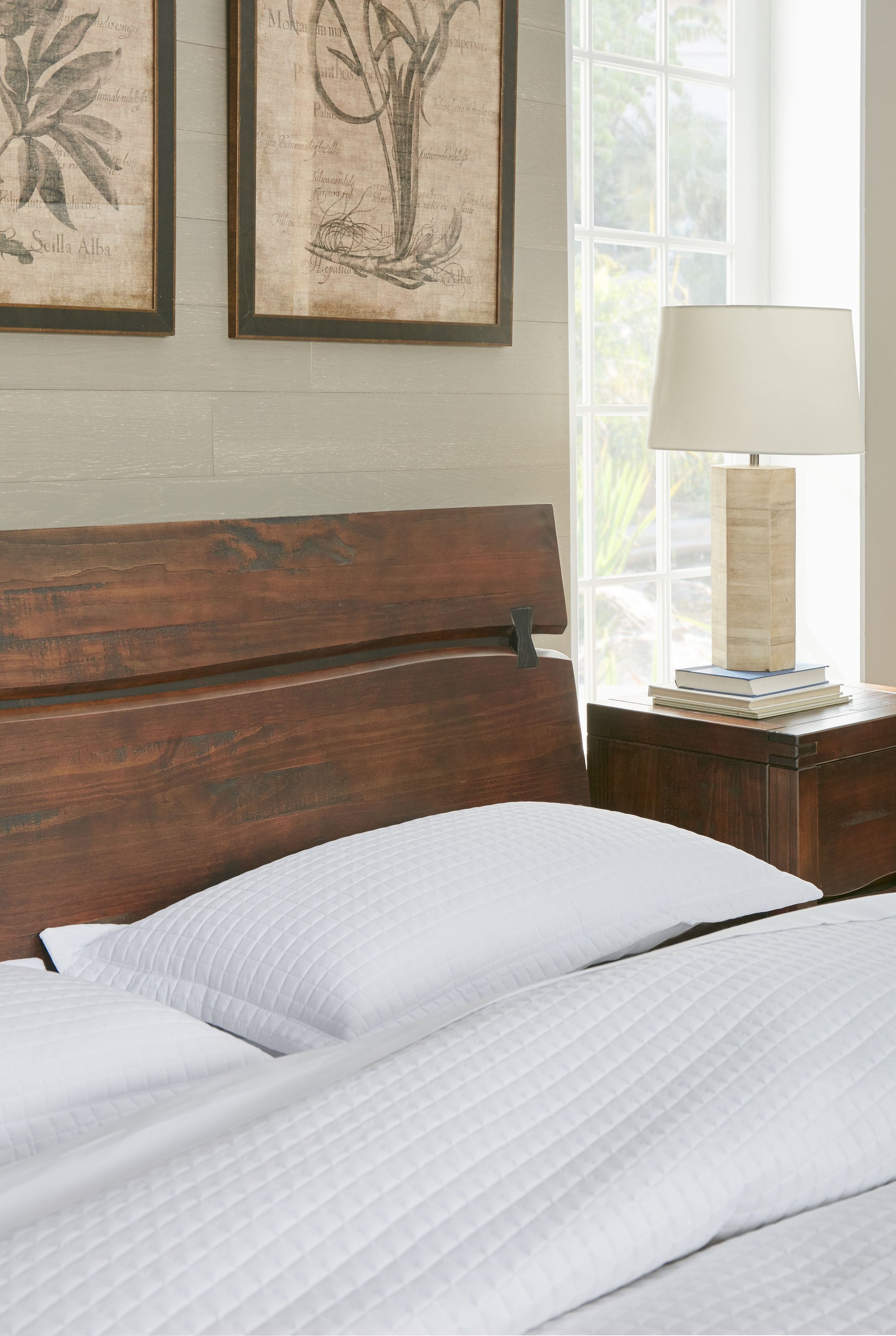 The Pasco Platform Bed perfectly combines elements of exotic styling and contemporary design in solid wood construction for a look that is both modern and rustic. The beautiful horizontal panel headboard is highlighted by a shaped, live edge and mission-style bowtie accents. The sturdy platform base is supported by metal sled style legs at the foot and includes a multi-slat base that eliminates the need for a box spring.
