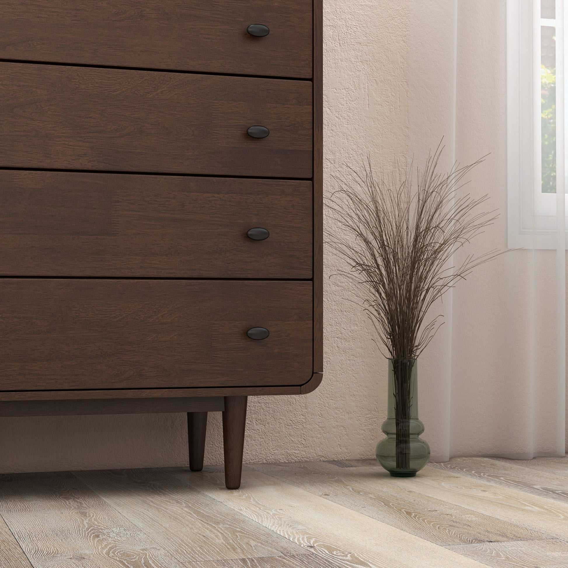 • Tapered legs: Adds a touch of elegance to the dresser's design.