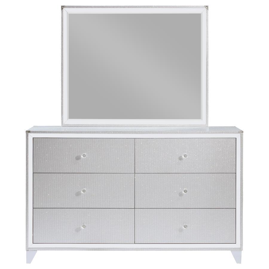 Larue - 6-Drawer Dresser With Mirror - Silver
