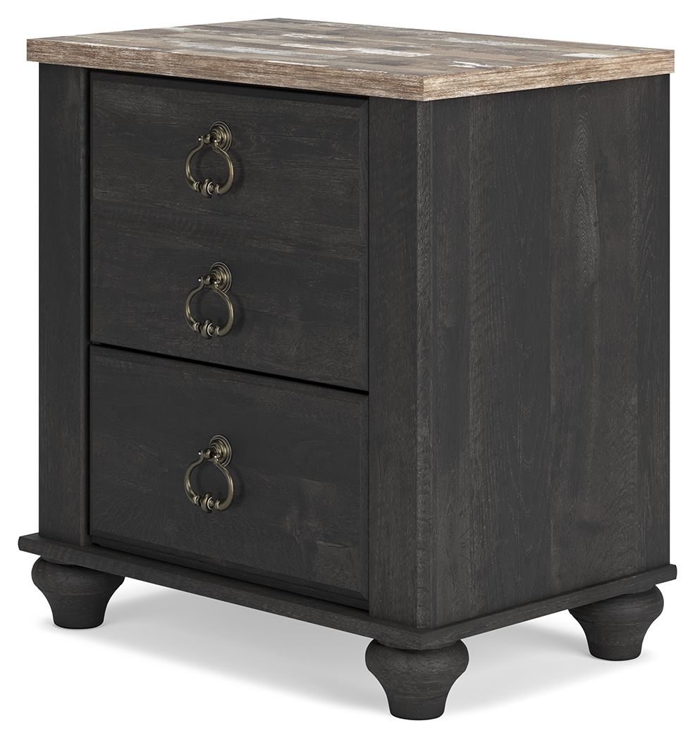 Charming French farmhouse aesthetics. Deep, industrial-inspired hues. This nightstand balances beautiful simplicity with the luxurious details of yesteryear. The distinct two-tone finish is bold without sacrificing the piece's quaint character. And with USB ports and smooth-gliding drawers for your respective bedside charging and storage needs, this nightstand's functionality goes hand-in-hand with your unique eye for vintage-inspired design.