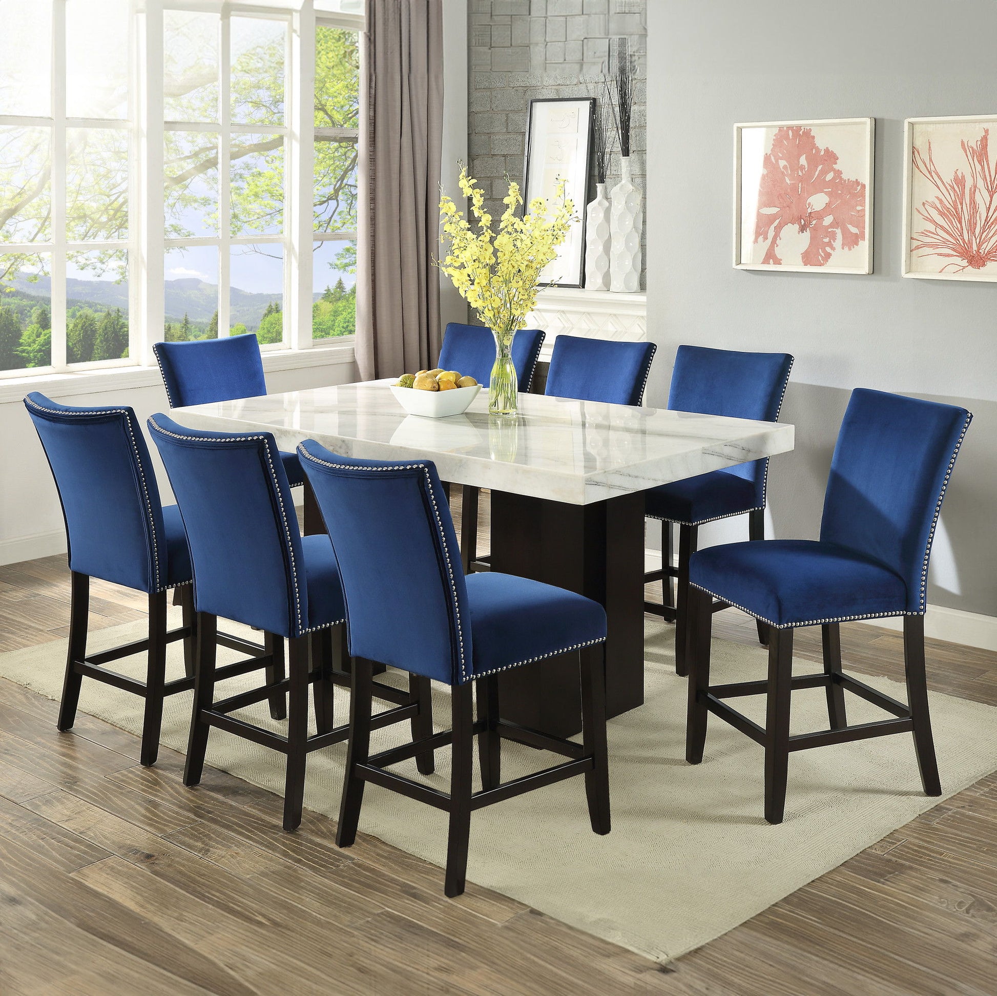Camila - 7 Piece Dining Set With Rectangular Counter Height Table - Blue