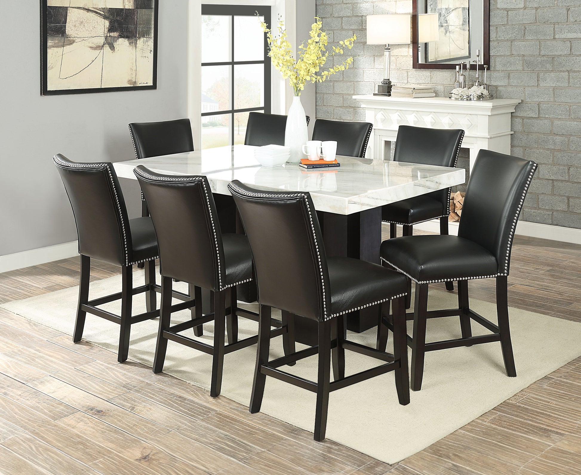 Camila - 9 Piece Counter Dining Set With Black Chair - White