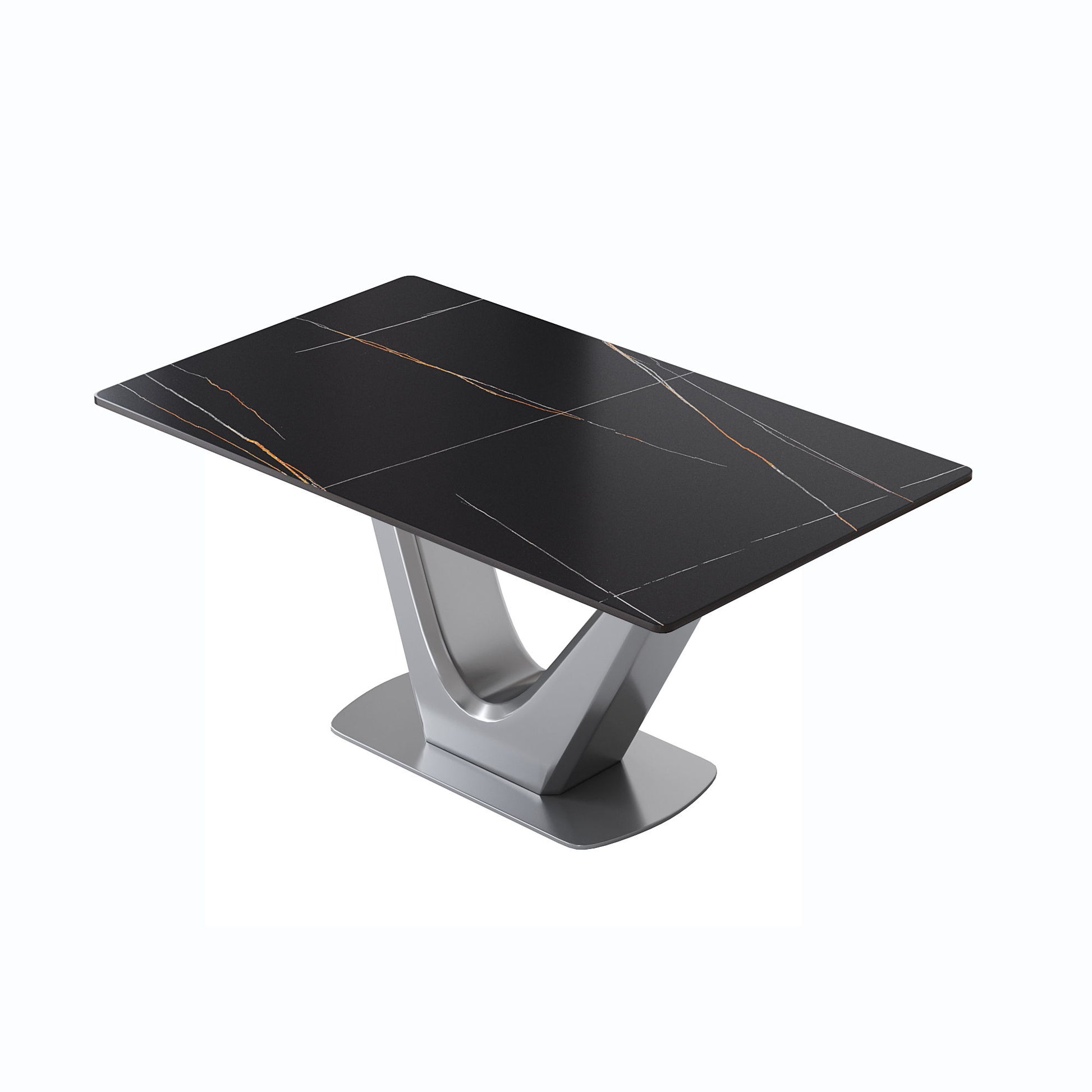 63" Modern Artificial Stone Panel V-Shaped Metal Legs, Can Accommodate 6-8 People - Black Top