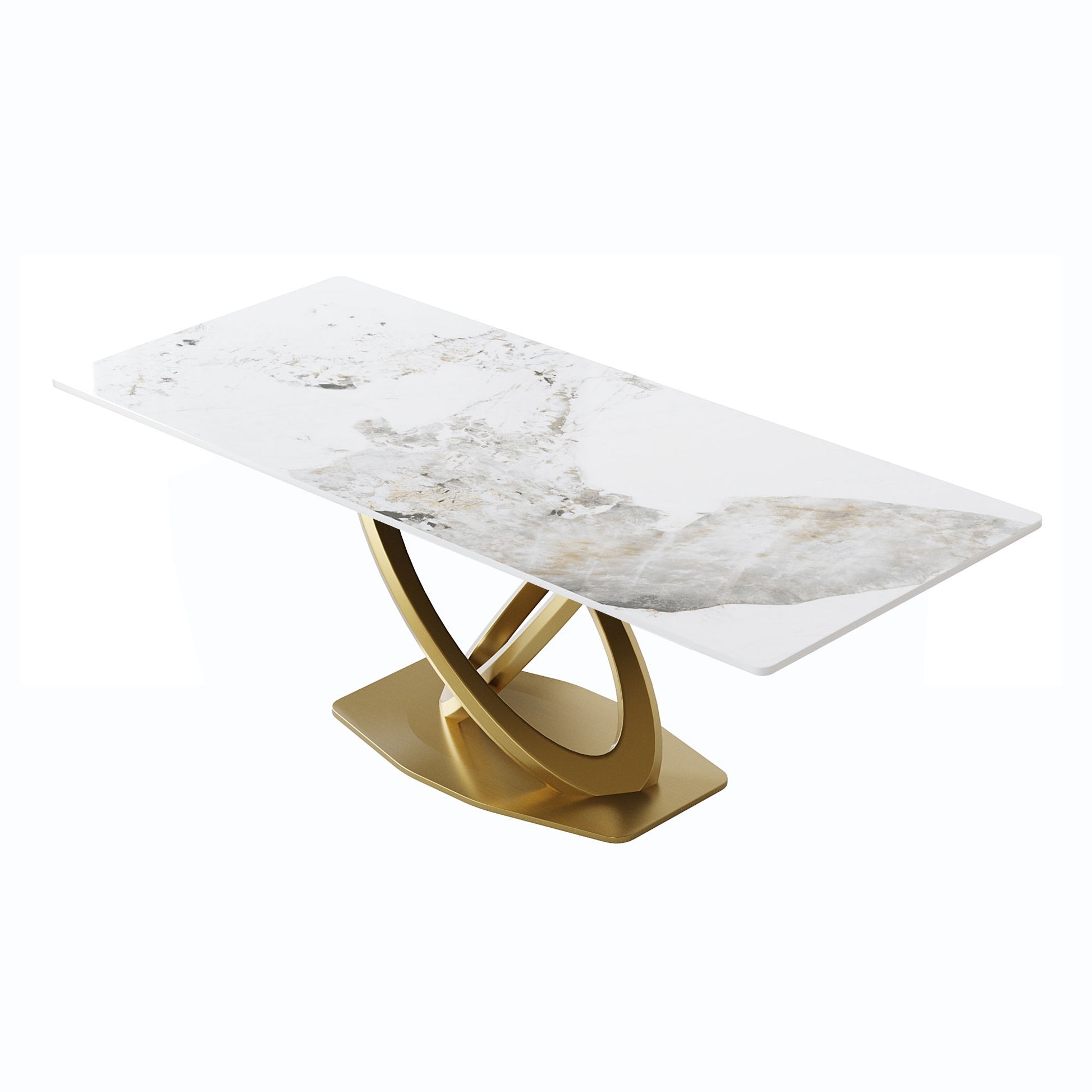 78.74" Modern Artificial Stone Pandora Panel Double-Ring Stainless Steel Metal Legs, Can Accommodate 8 People - White / Gold