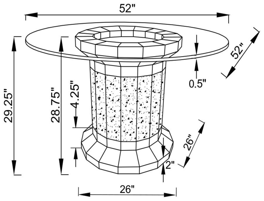 52.0"W x 52.0"D x 29.5"H - 173.14 lb