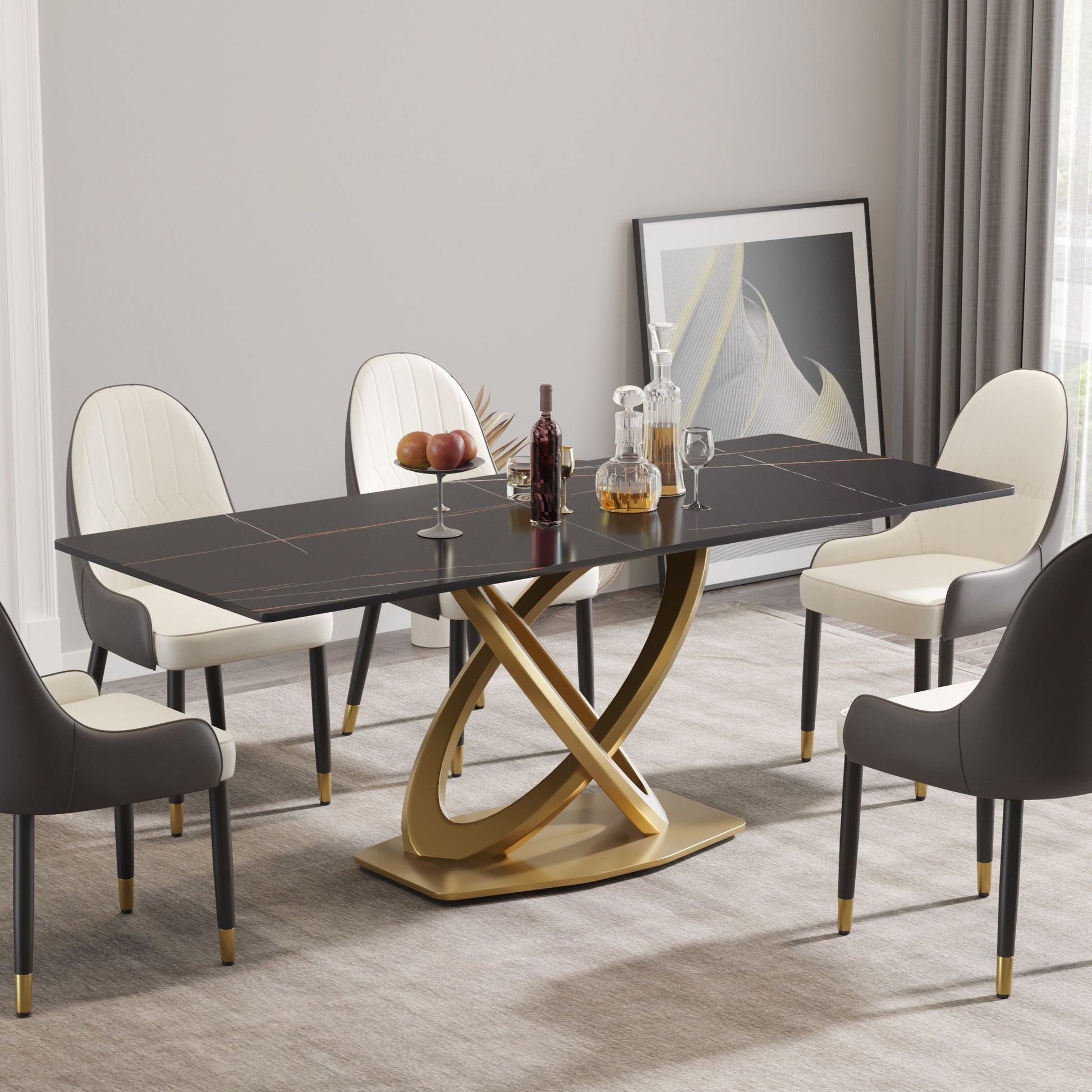 - Unique Double-Ring Base: Featuring a golden double-ring-shaped base design, this table combines stability with a touch of elegance for a high-class dining experience.