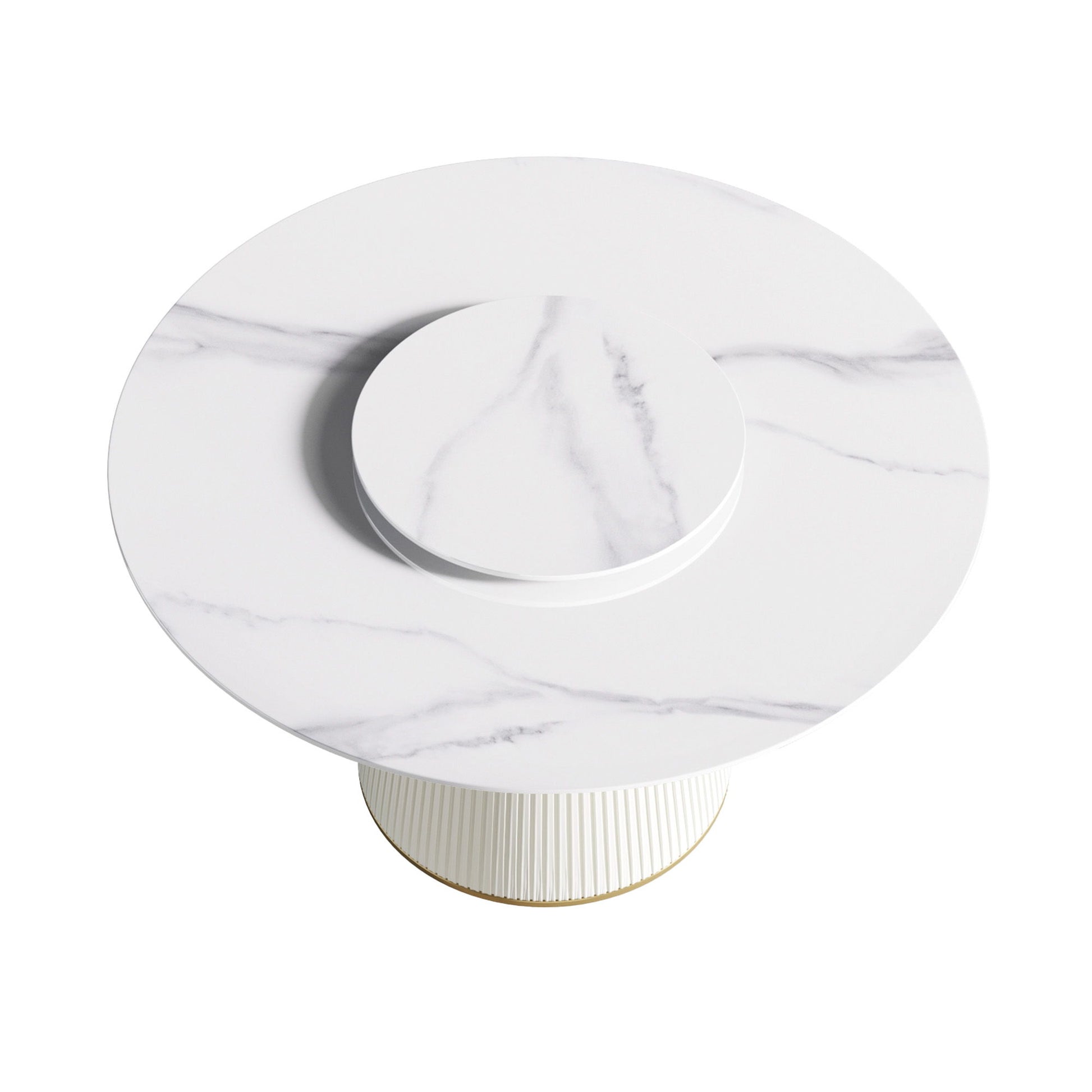 Modern Artificial Stone Round Plywood PU Base Dining Table, Can Accommodate 6 People, Artificial Stone Turntable (Not Including Chairs) - White / Beige