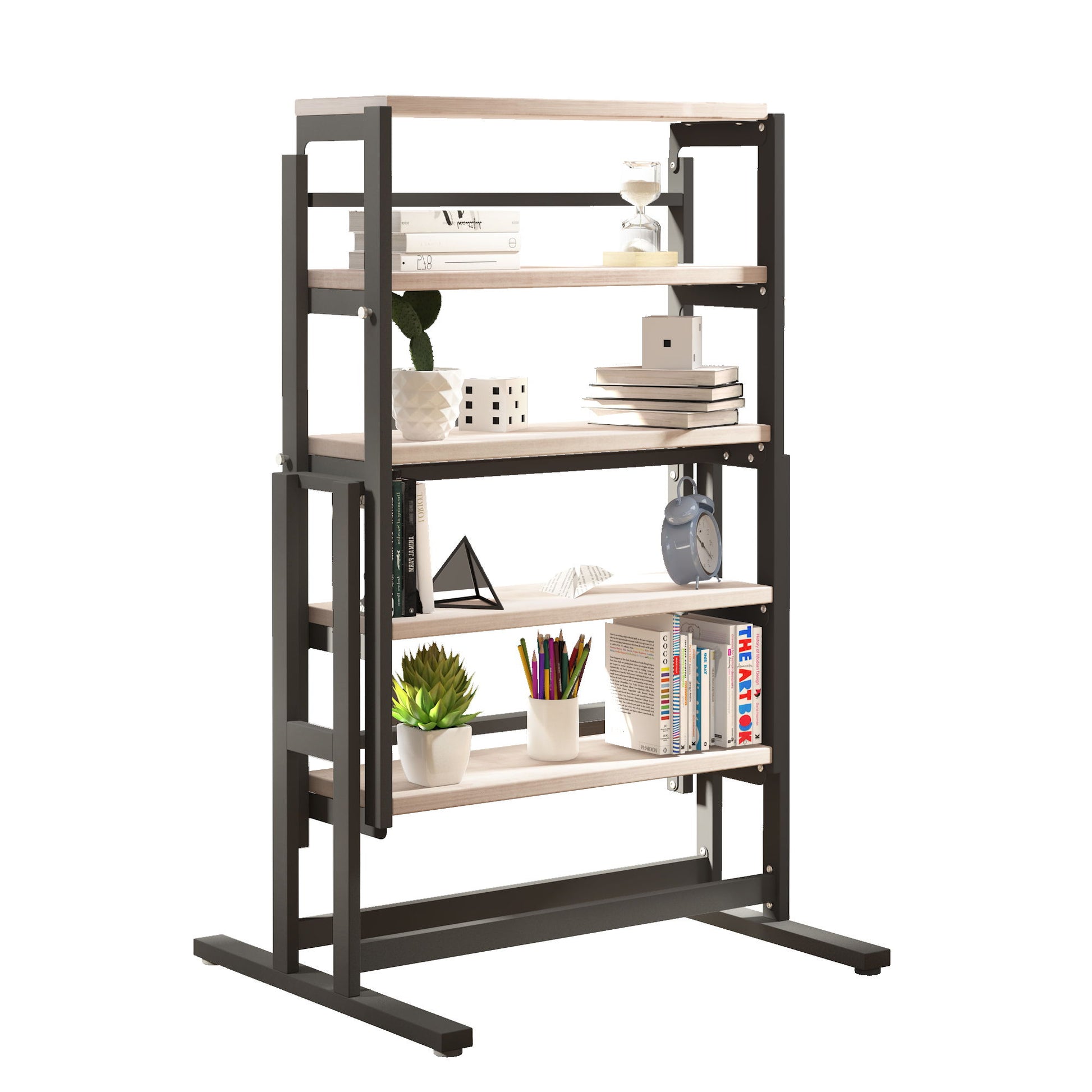 Switch Mode: Table Mode:55.12" L x 29.33" W x 30.31" H; Shelf Mode: 27.36" L x 10.83" W x 52.36" H. High-Quality Construction: Premium mahogany wood and metal frame for durability and stability. Convertibility at its Finest: Effortlessly switch between table and shelf functions. Space-Saving Solution: Ideal for smaller spaces, maximizing versatility. Versatile Usage: Functions as dining table, workspace, console table, or display shelf.