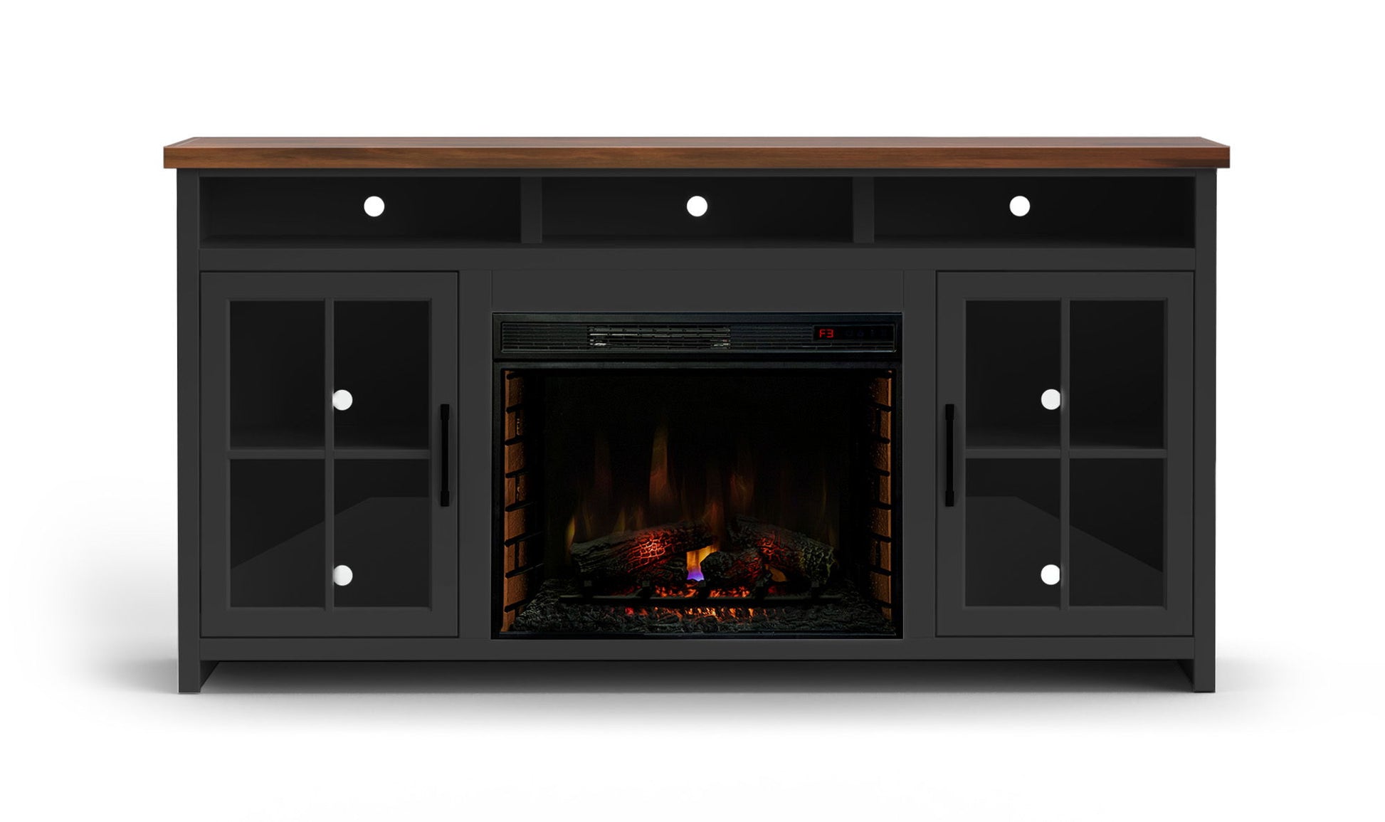 Essex - 74" Fireplace TV Stand Console For TVs Up To 85" - Black And Whiskey