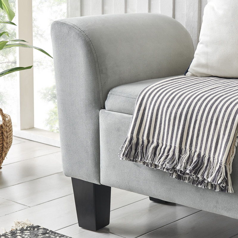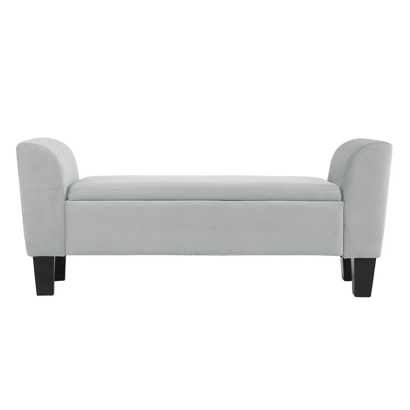Elevate your home's aesthetic with our contemporary velvet storage bench! This bench exudes sophistication, boasting curved arms and solid wood tapered legs that complement its performance velvet fabric. Its functional design offers ample storage space, making it a versatile addition to any room, combining elegance and practicality seamlessly.