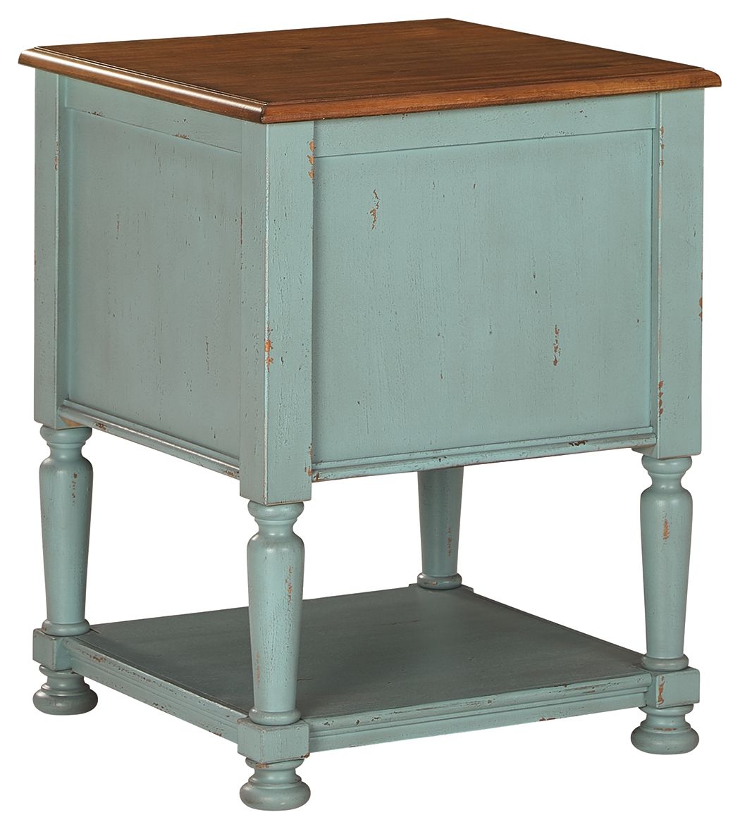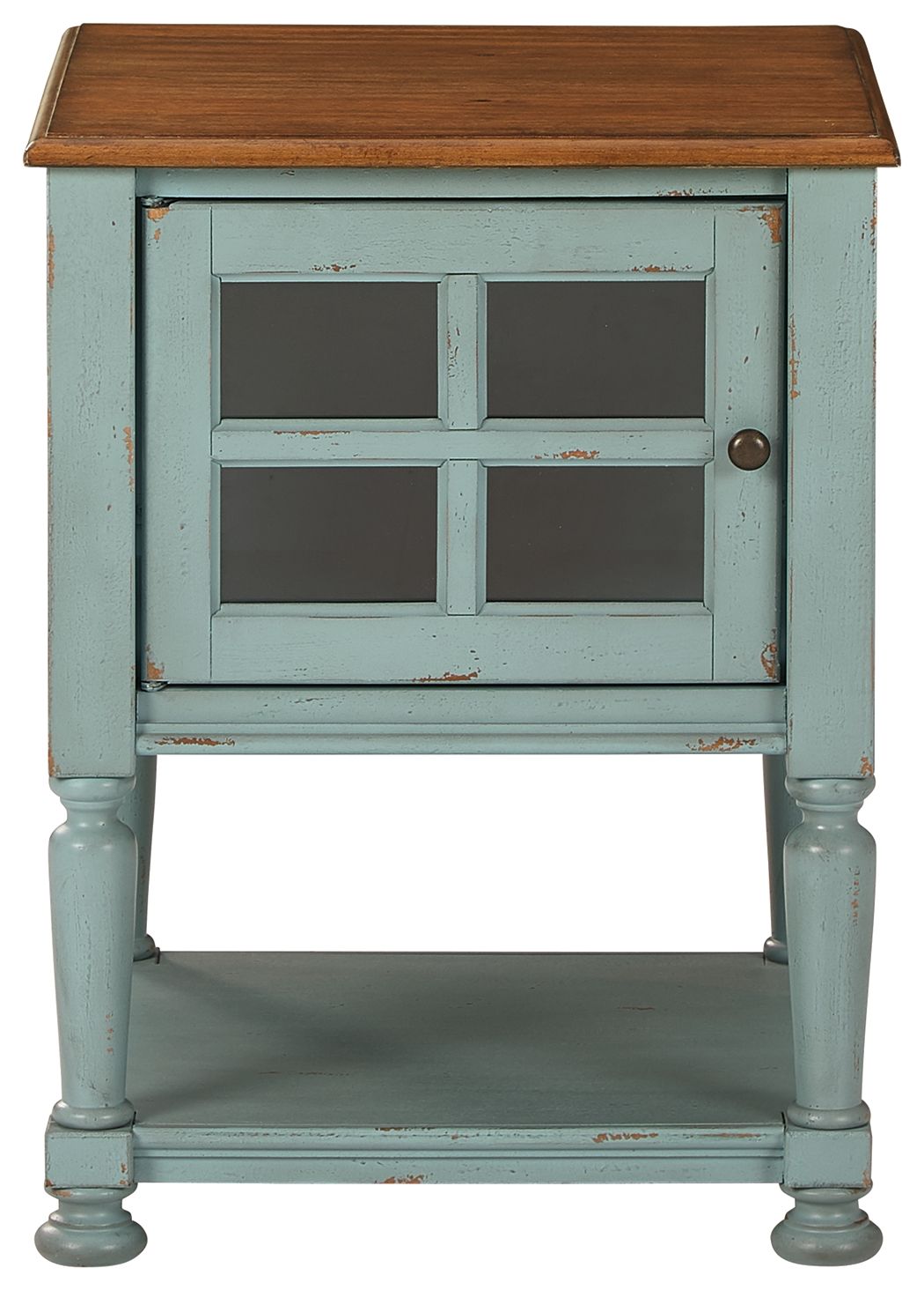Achieve the vintage casual look you love with this accent cabinet. A stylish storage solution in antiqued teal and brown finishes, this accent cabinet completes any room. A lattice door front and open-air storage shelf create a layered look with endless possibilities.