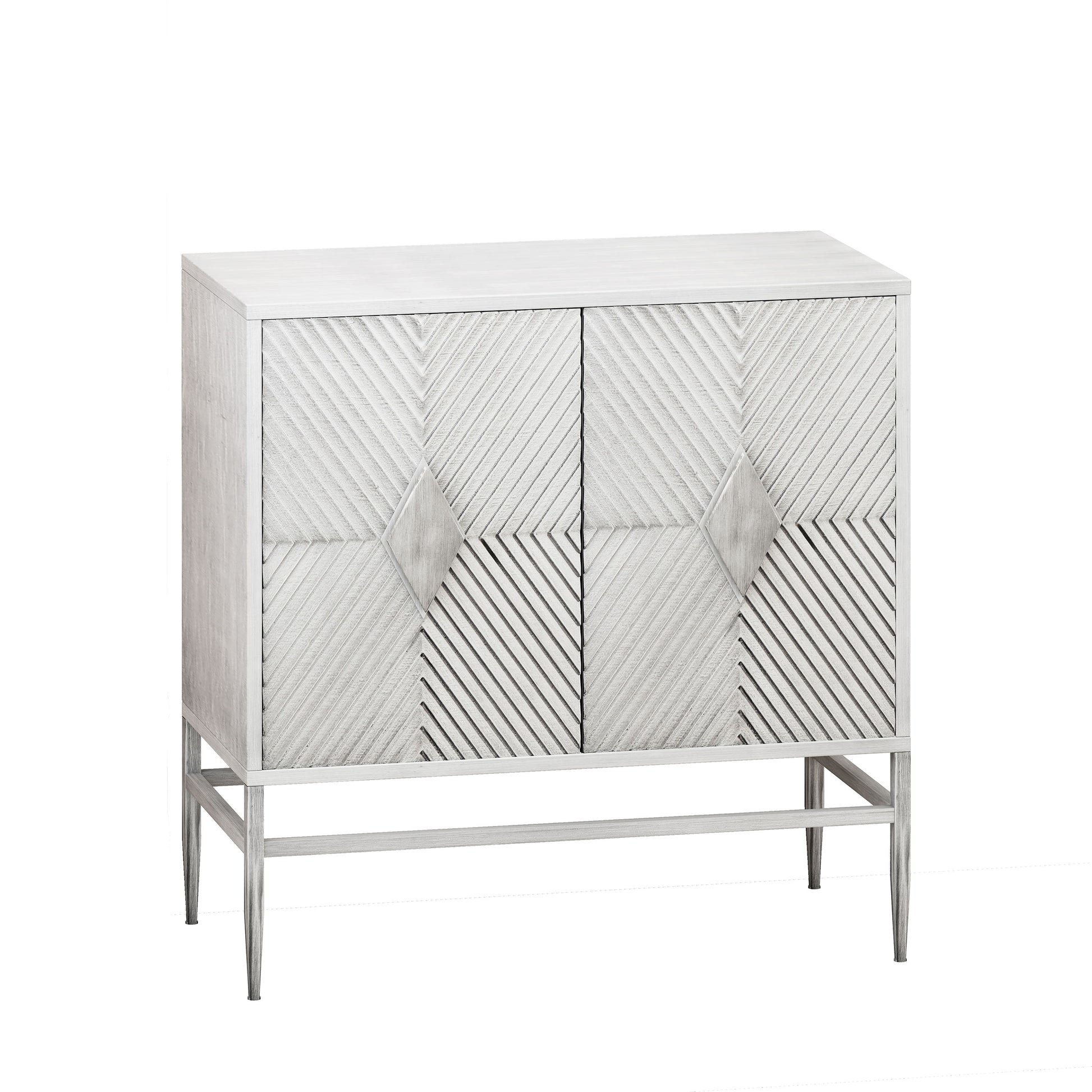 Modern 2 Door Wooden Storage Cabinet Accent Cabinet With Metal Leg Featuring Two Tier Storage, For Living Room, Entryway And Dining Room - White Washed