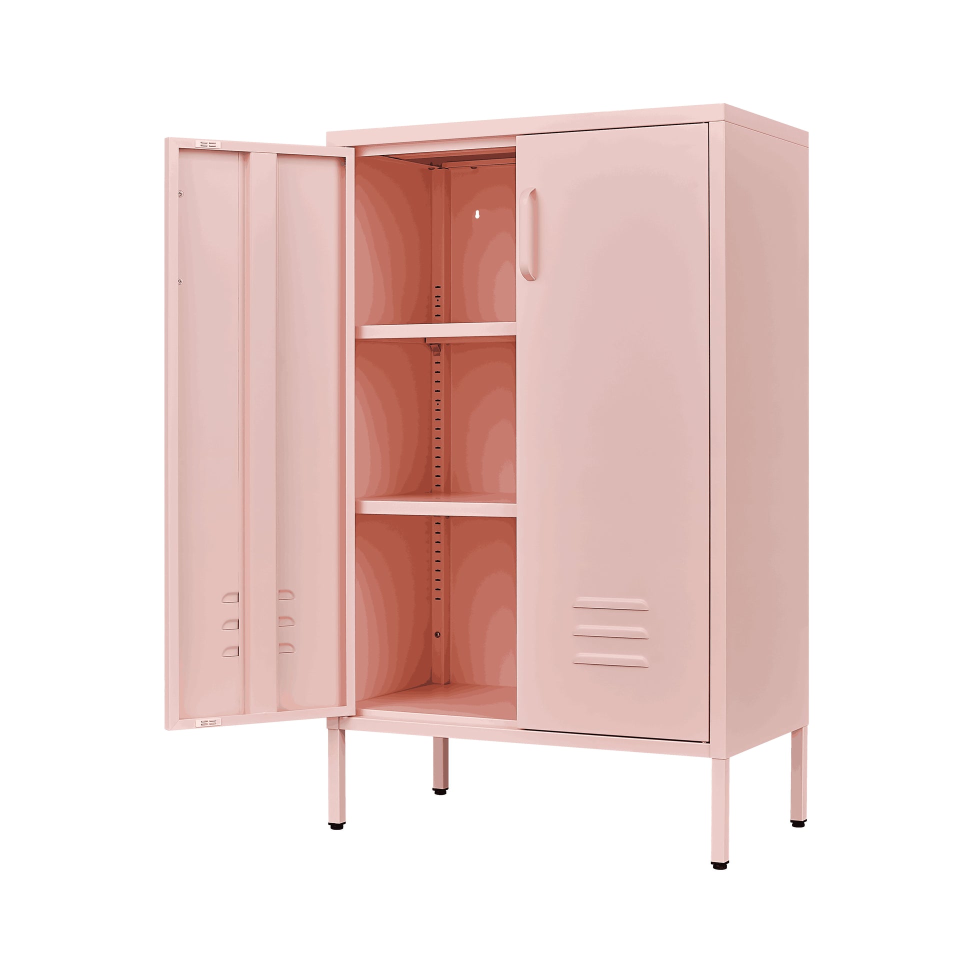 Pink Steel Double Door Cabinet With Handles, With Removable Dividers And Adjustable Height. Suitable For Living Room, Office, Bedroom, Study And Other Places - Pink