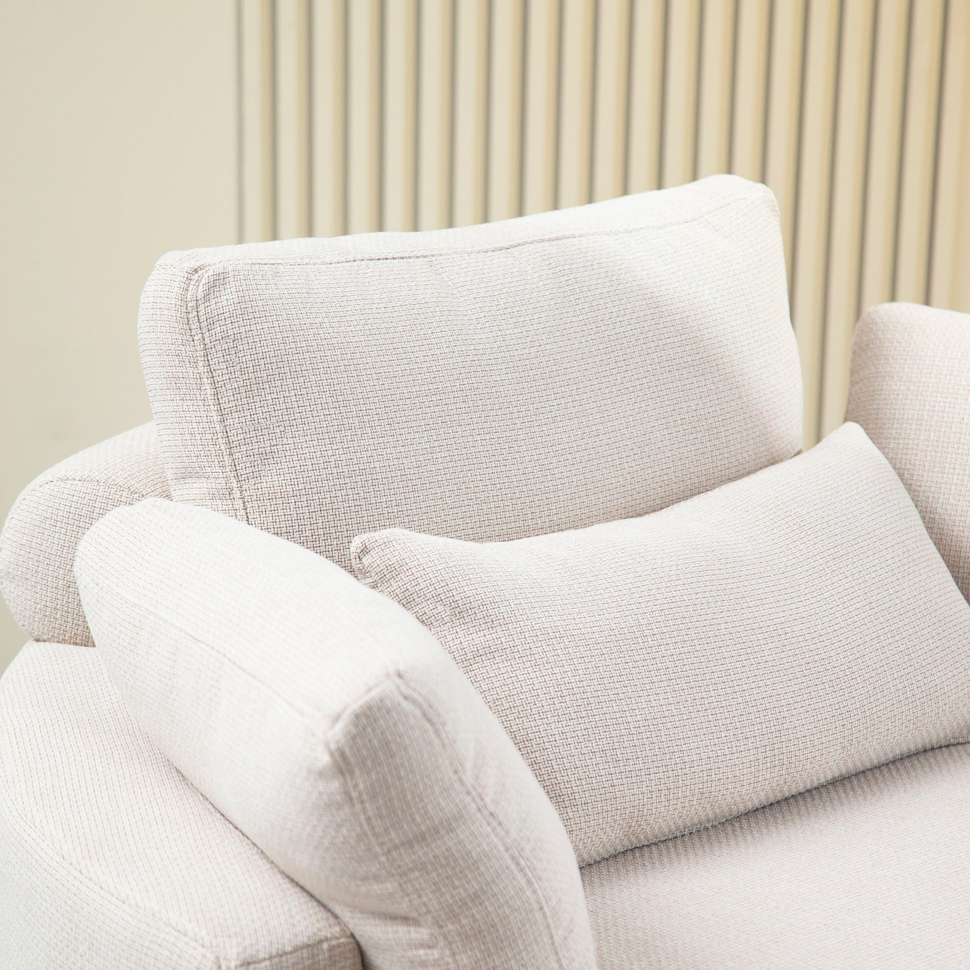 Spacious Design: Upholstered modern sofa chair with an extra-large seating area for comfortable reclining, TV watching, or napping. Comfortable Cushions: Softly textured sofa featuring cozy high-density foam cushions for optimal softness and support. Strong and Durable: Sturdy hardwood frame, durable foam cushion material, and sturdy plastic legs ensure long-lasting use. Storage Ottoman: Removable top with hidden storage space, ideal for keeping living room essentials organized.