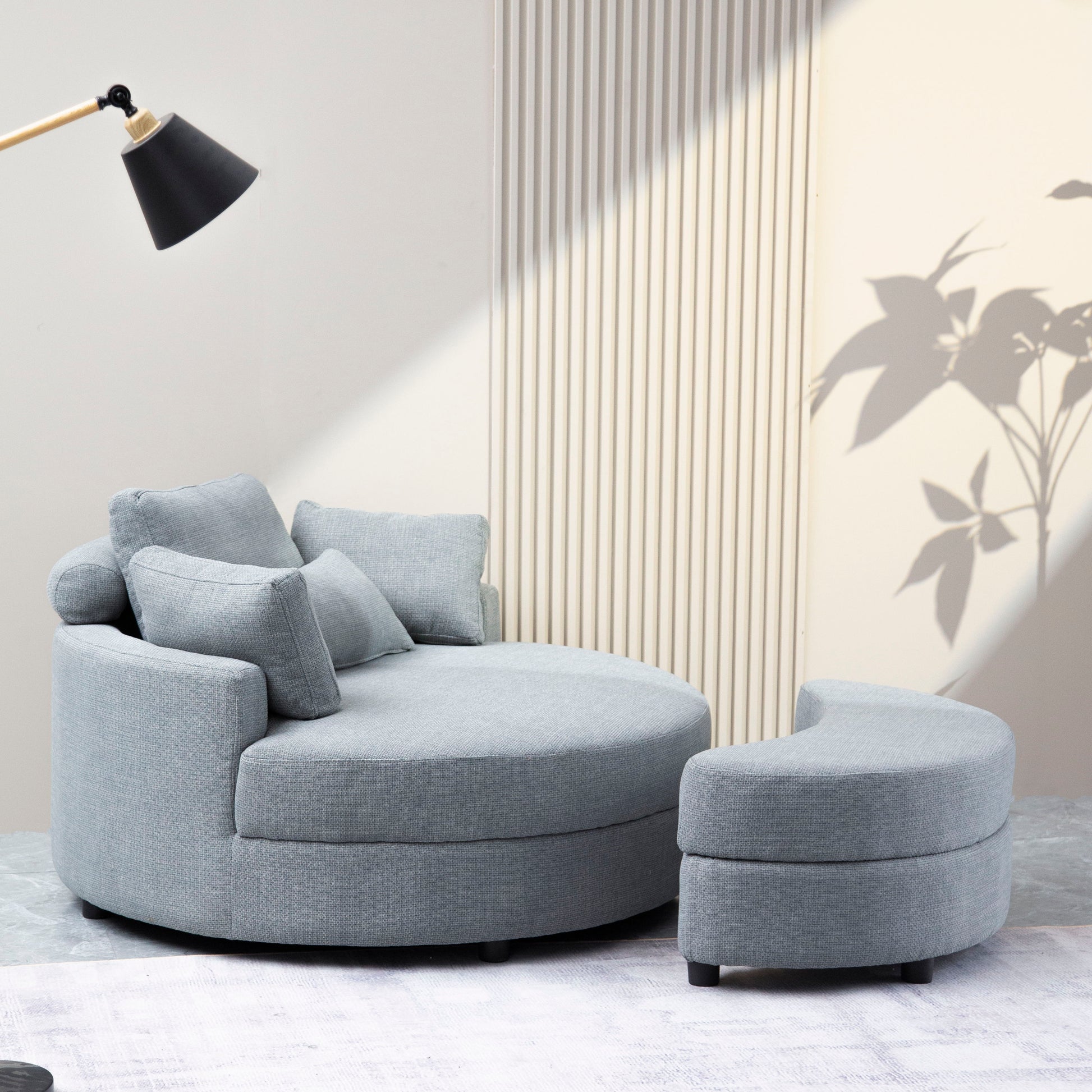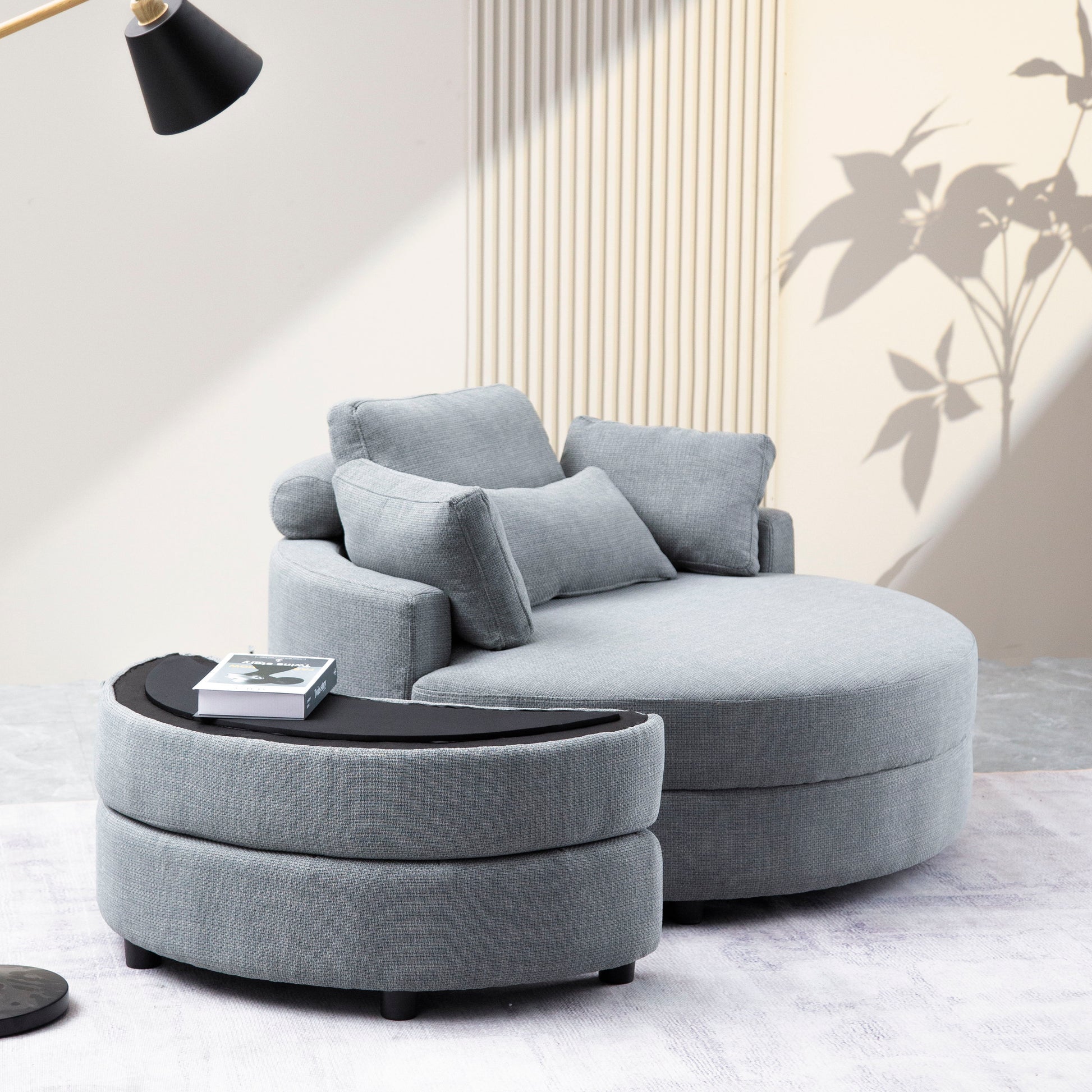 Large Round Chair With Storage Linen Fabric For Living Room Hotel With Cushions