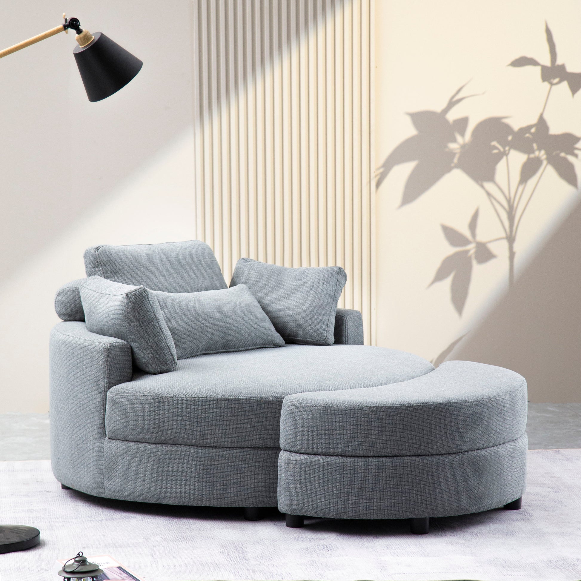 Large Round Chair With Storage Linen Fabric For Living Room Hotel With Cushions - Light Gray