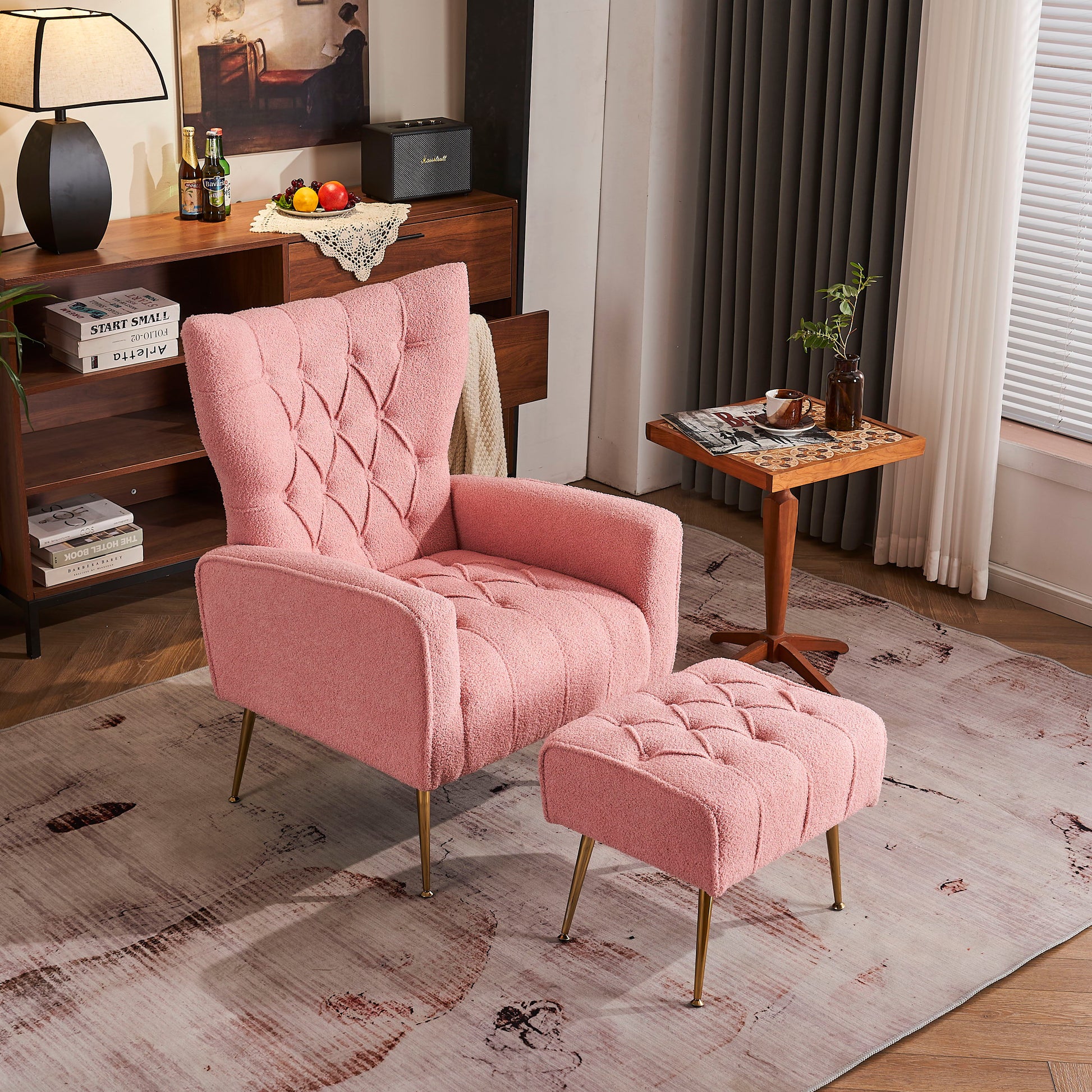 31.5" Modern Accent Chair With Ottoman, Comfy Armchair For Living Room, Bedroom, Apartment, Office - Pink