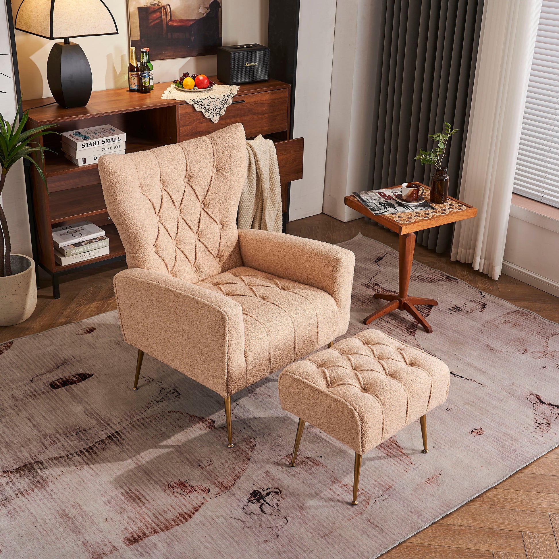 Modern Accent Chair With Ottoman, Comfy Armchair For Living Room, Bedroom, Apartment, Office - Cream