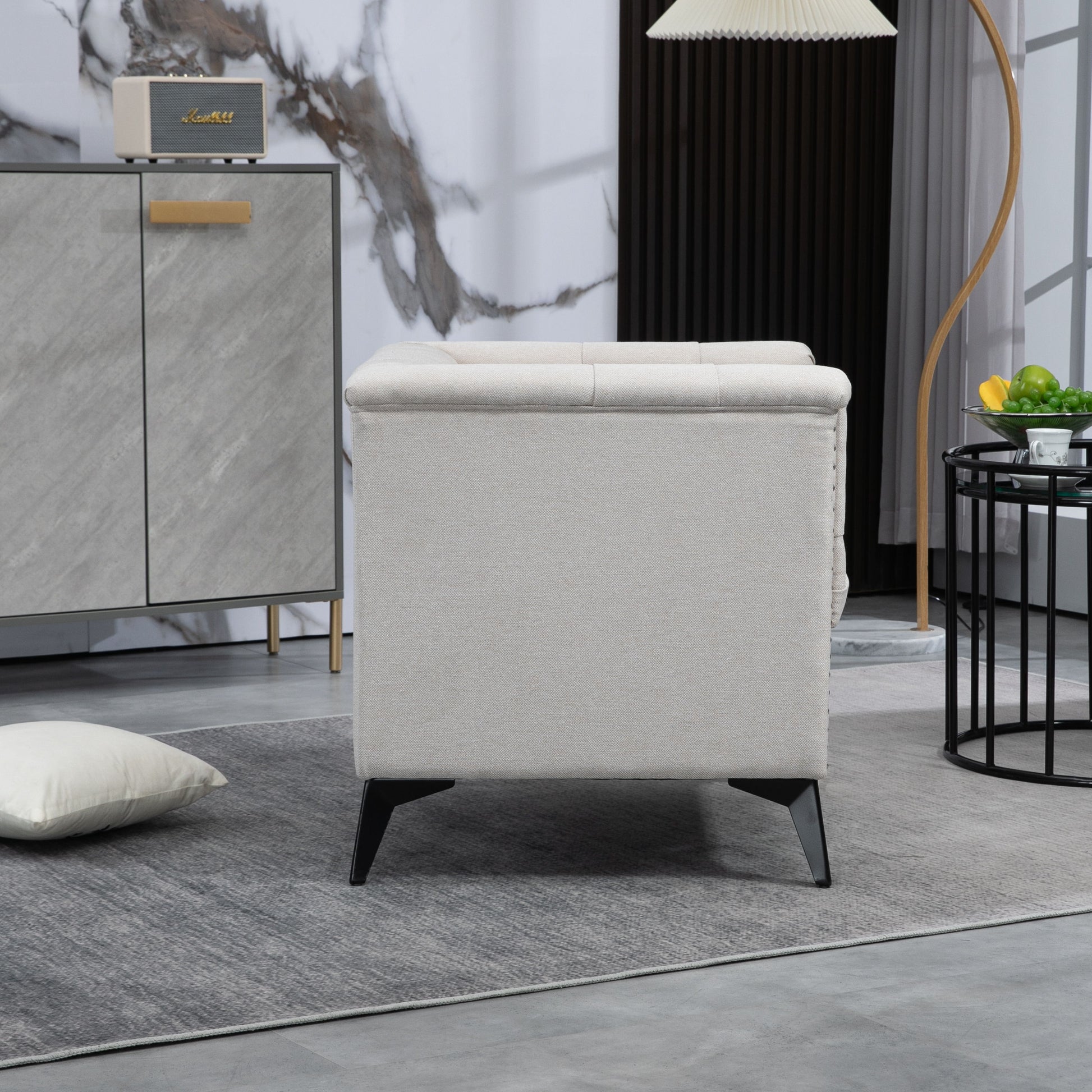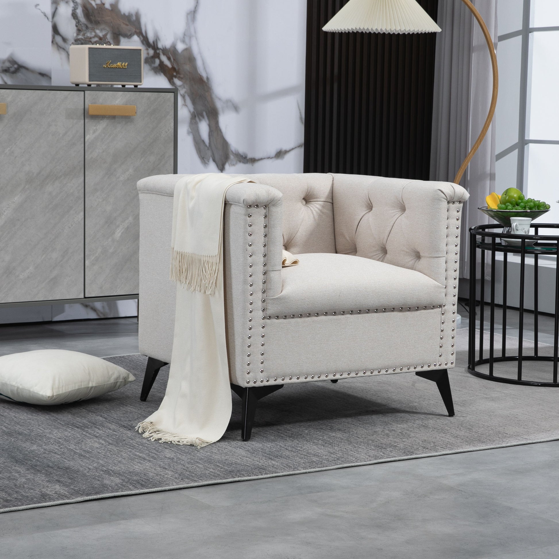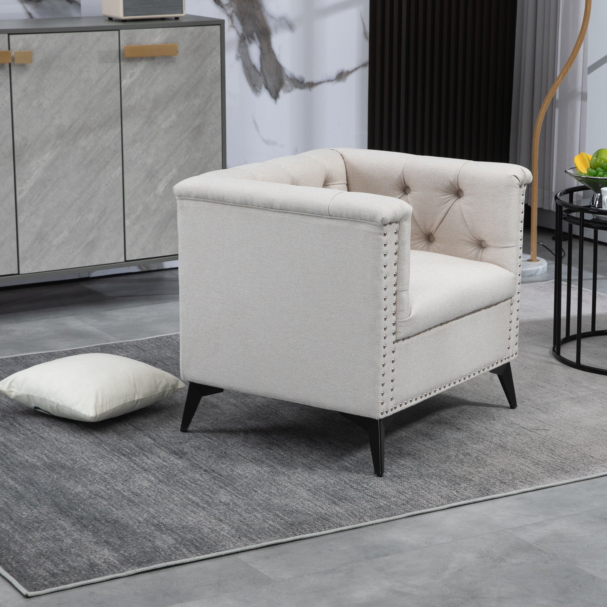 Accent Chair Living Room Chairs Single Sofa Chair, Arm Chairs With Linen Fabric, Mid Century Accent Arm Chairs Comfy Reading Lounge Club Armchair For Bedroom Office Study - Beige