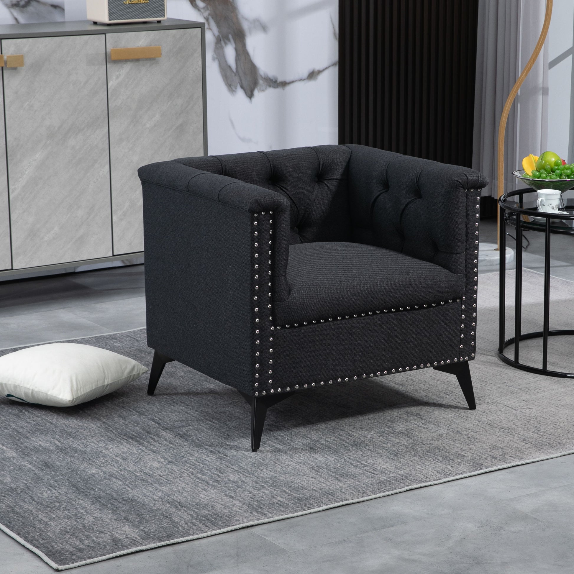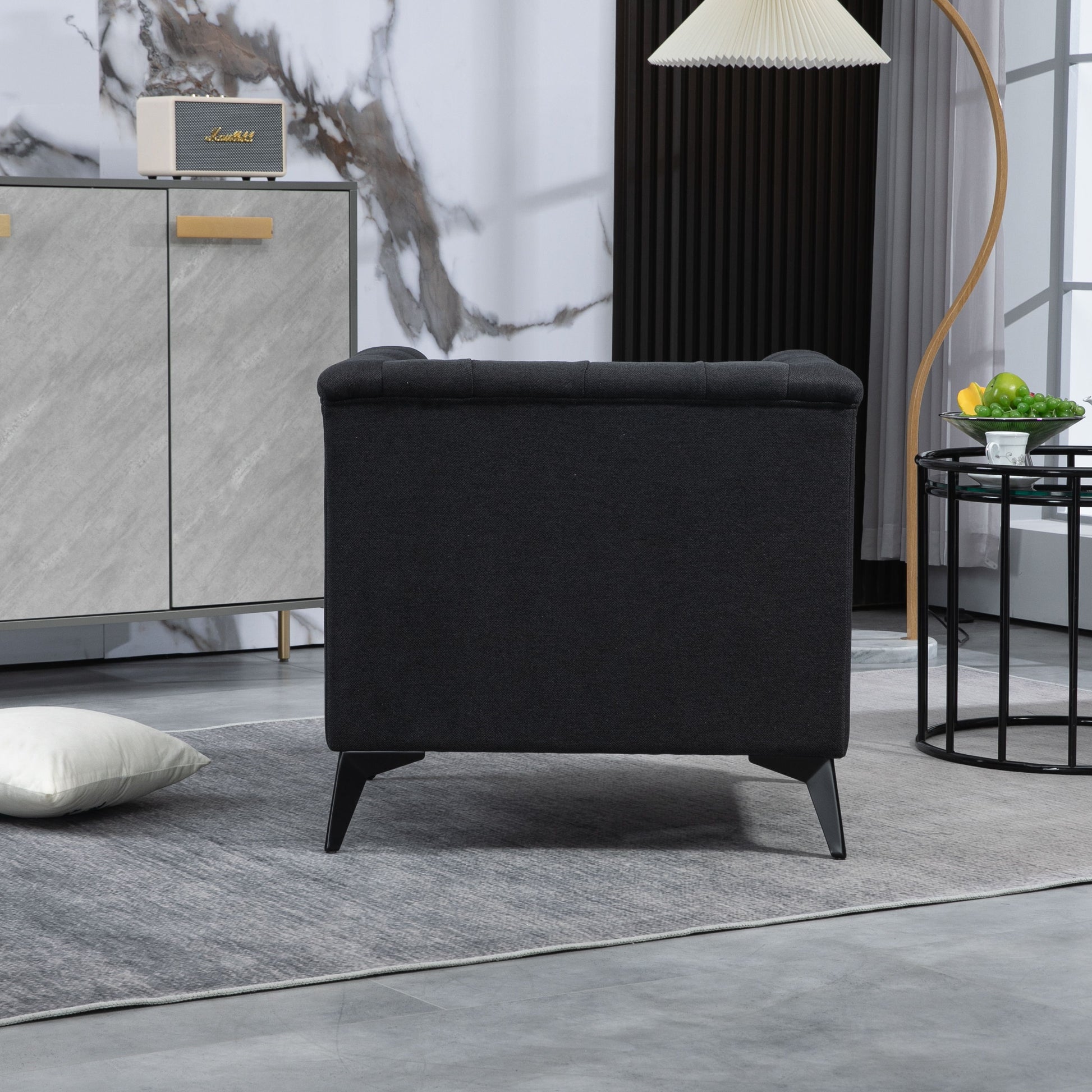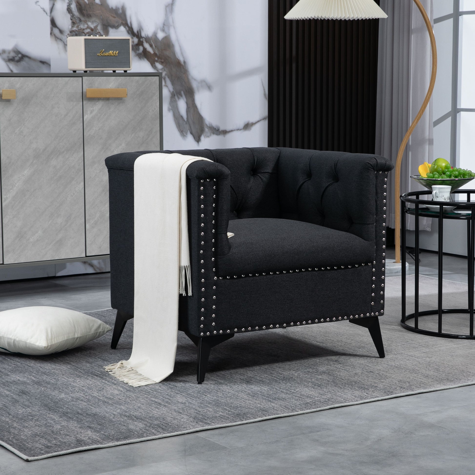 Accent Chair Living Room Chairs Single Sofa Chair, Arm Chairs With Linen Fabric, Mid-Century Accent Arm Chairs Comfy Reading Lounge Club Armchair For Bedroom Office Study - Black