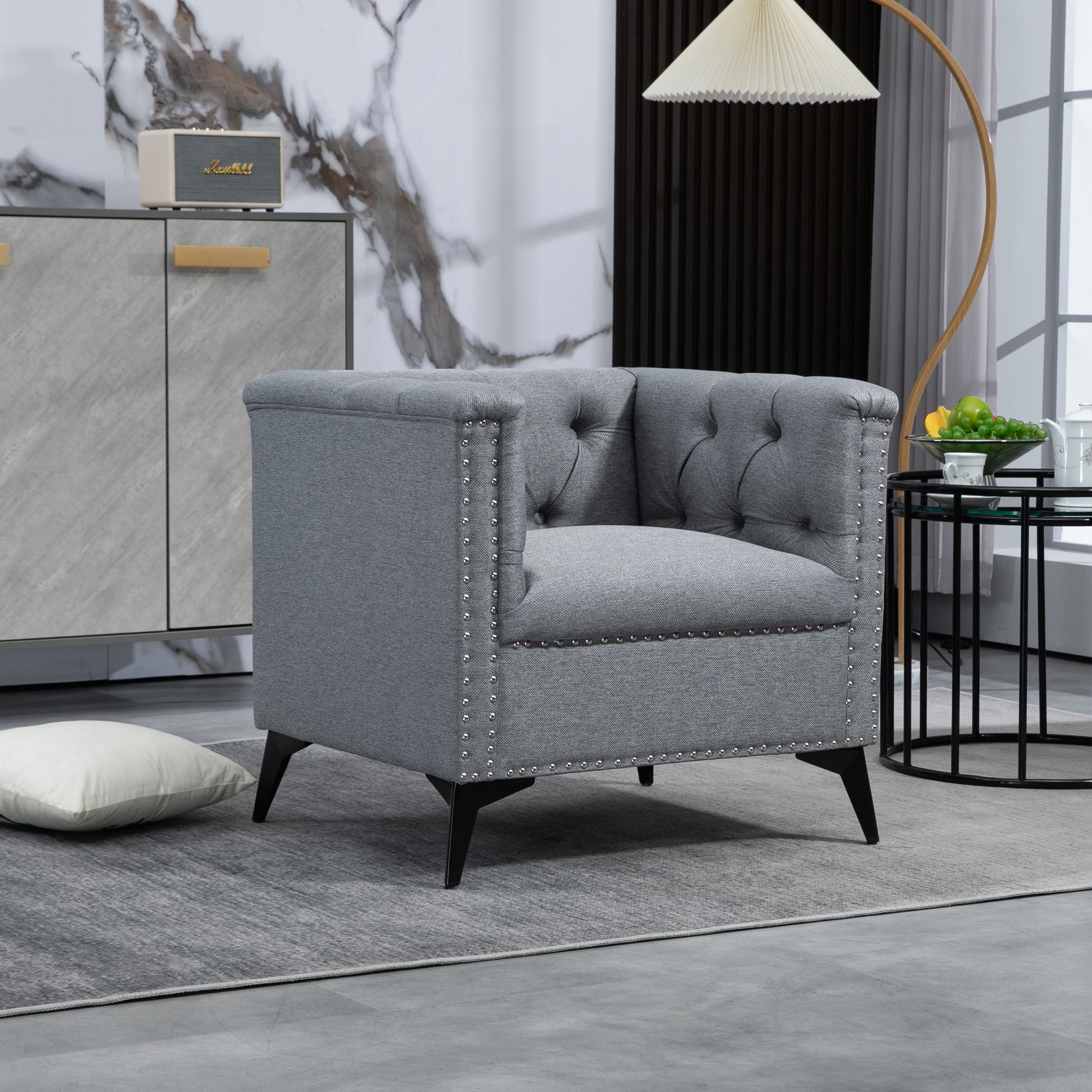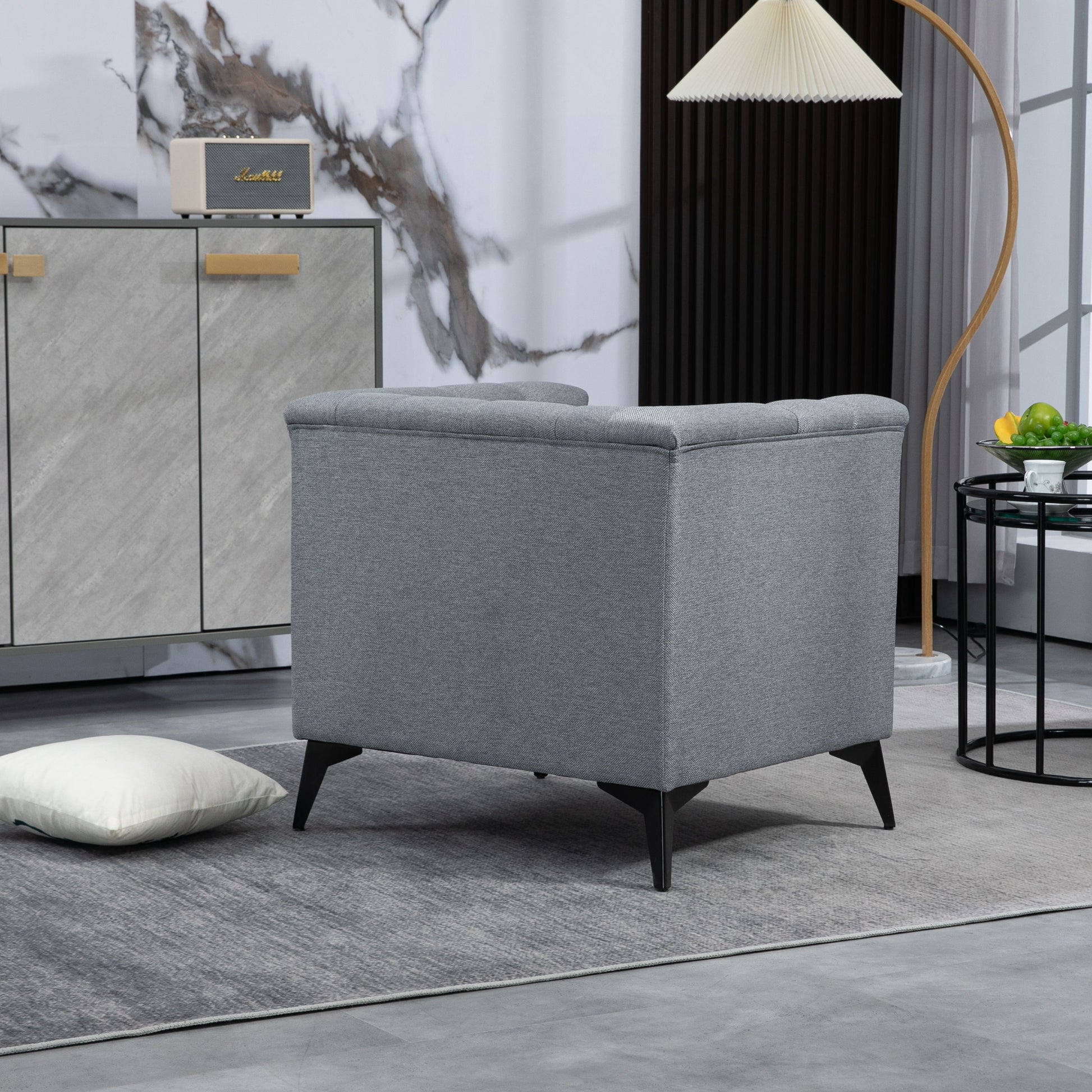 Accent Chair Living Room Chairs Single Sofa Chair, Arm Chairs With Linen Fabric, Mid Century Accent Arm Chairs Comfy Reading Lounge Club Armchair For Bedroom Office Study - Gray