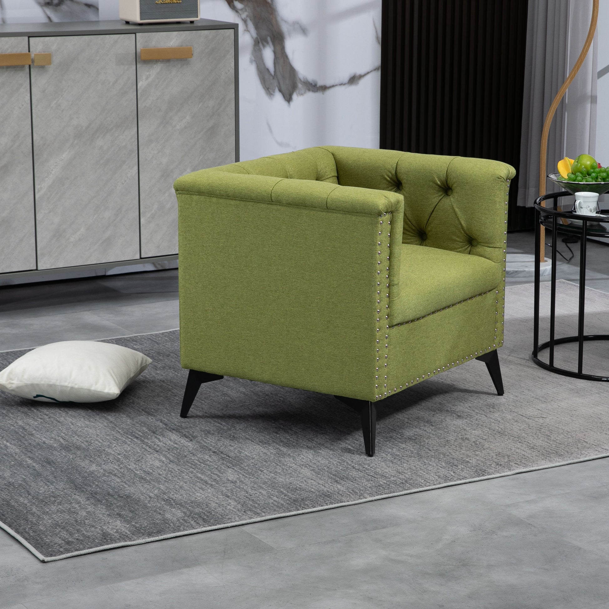 Accent Chair Living Room Chairs Single Sofa Chair, Arm Chairs With Linen Fabric, Mid-Century Accent Arm Chairs Comfy Reading Lounge Club Armchair For Bedroom Office Study - Green