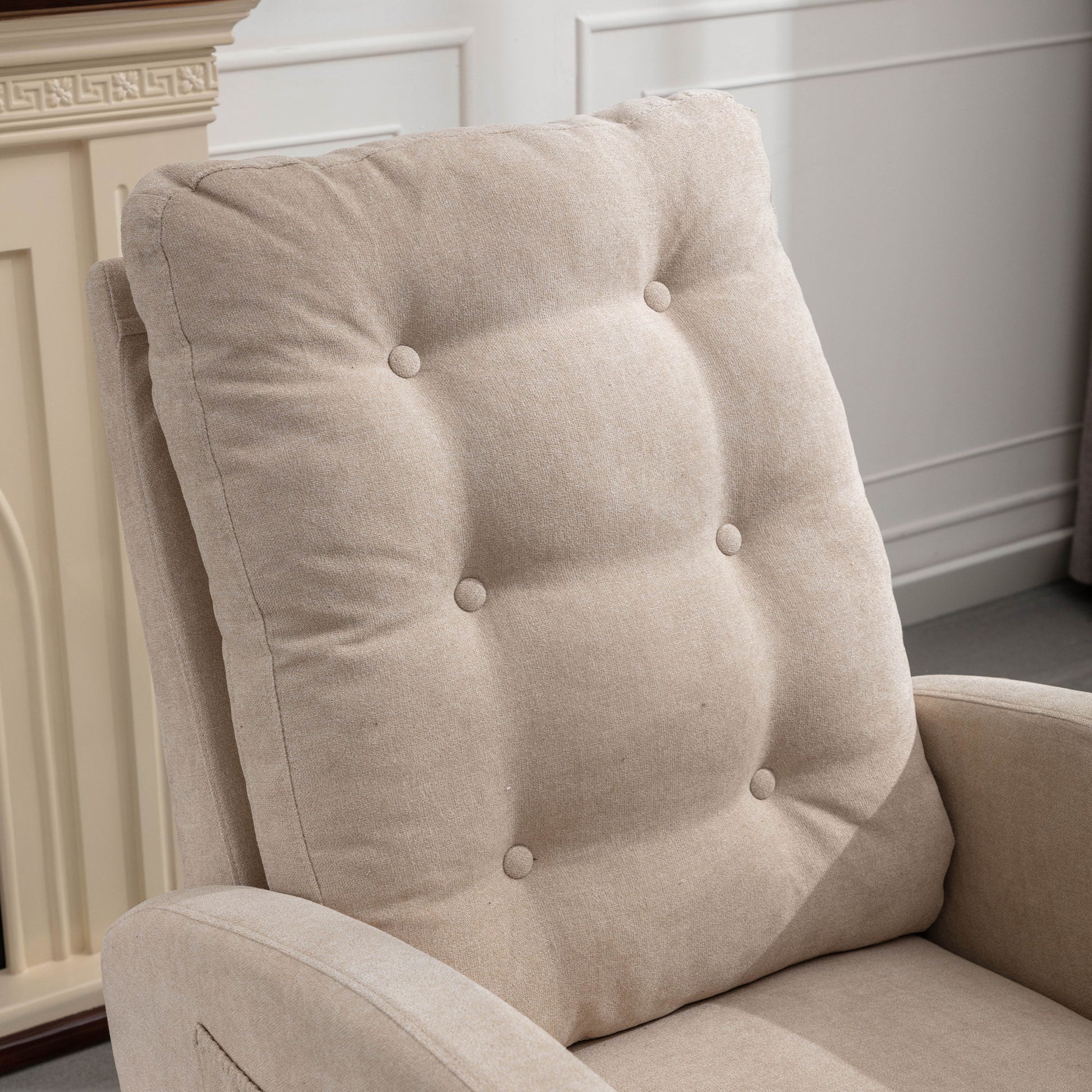 Accent Rocking Chair With Footrest High Back Rubber Wood Rocking Legs Bedroom Living Space - Beige