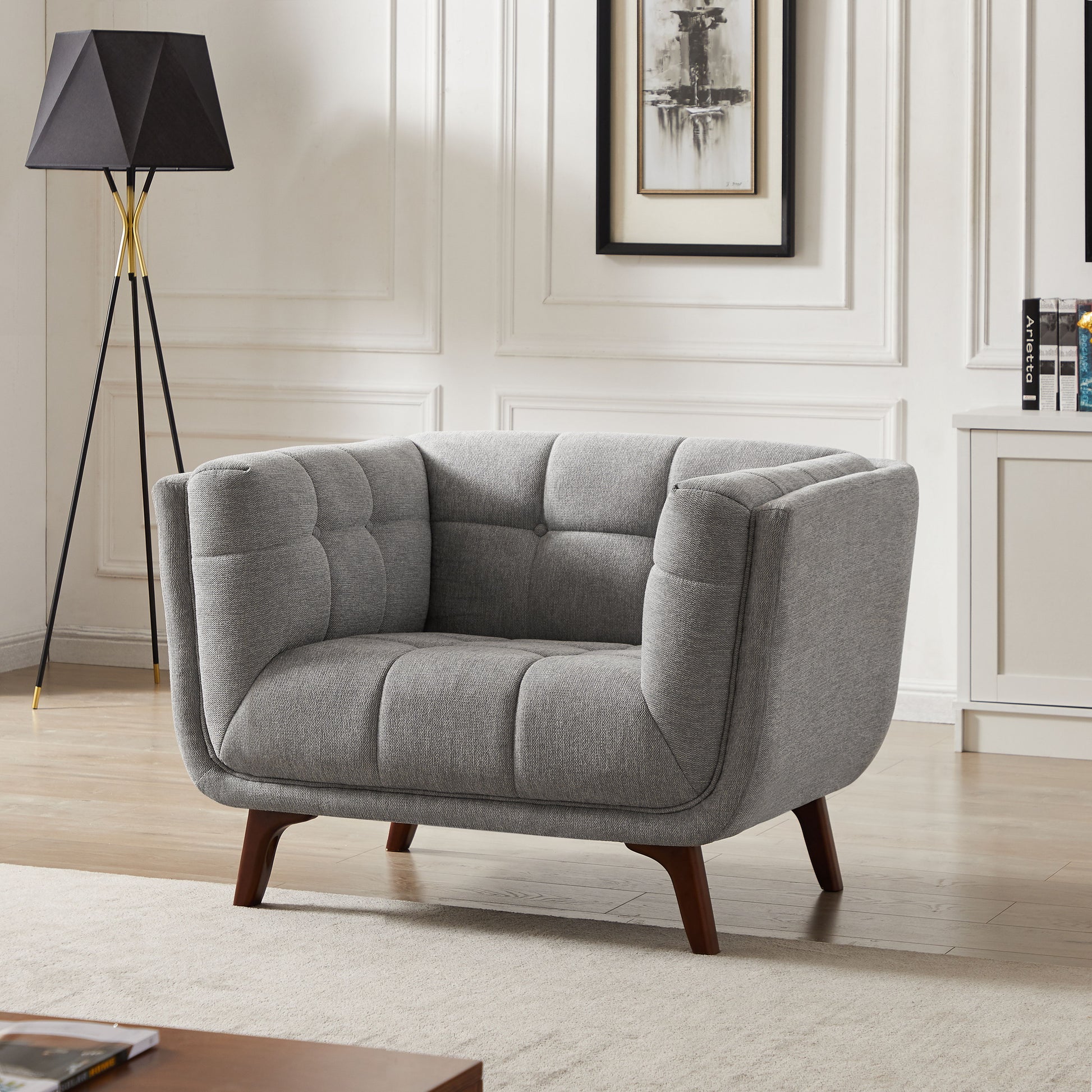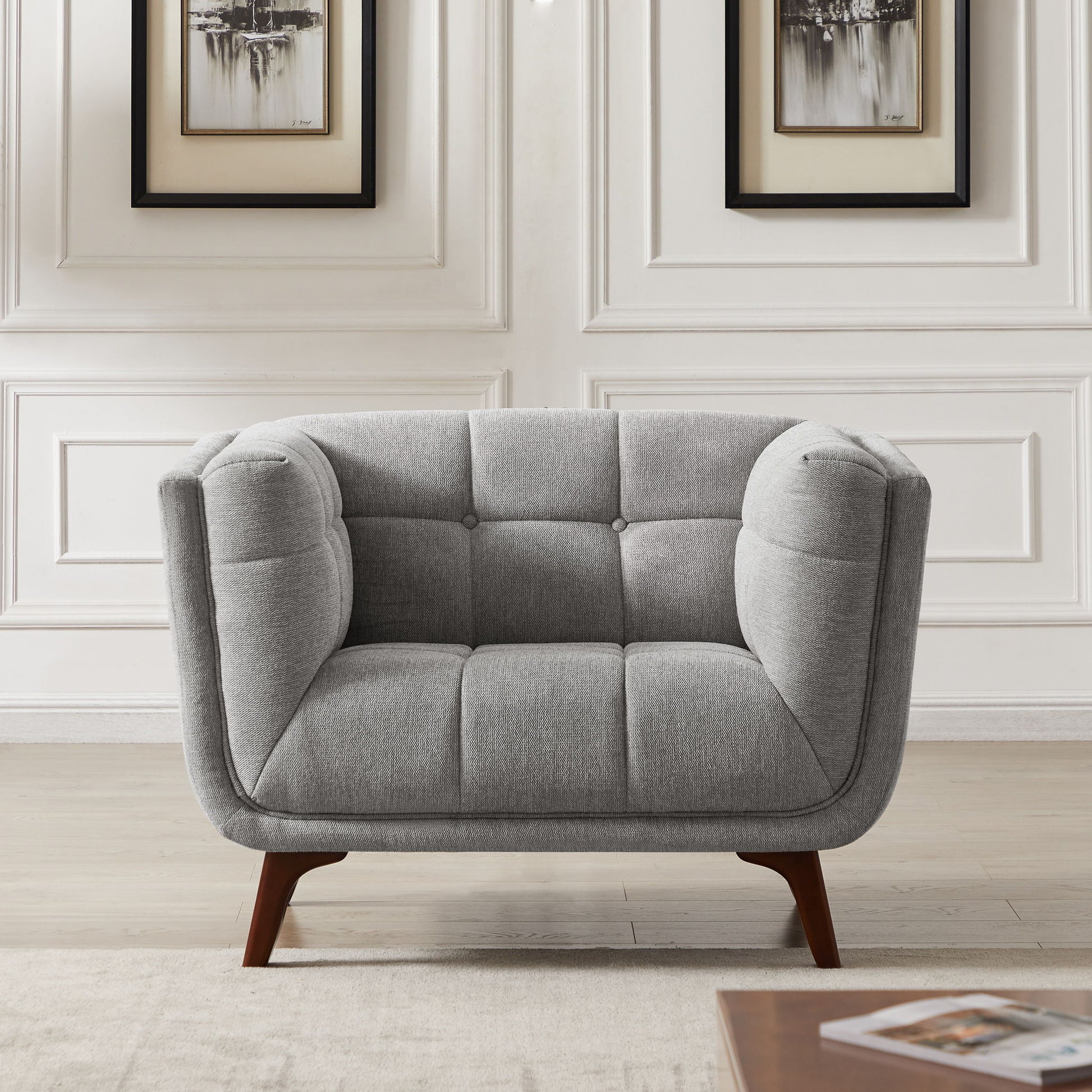 Mid-Century Modern Design: Embrace a timeless aesthetic with a sleek and sophisticated look. Experience luxurious comfort and durability with high-quality materials. Ideal Comfort: Enjoy a cozy seating experience with a high-density foam cushion and medium-firm seat firmness. Biscuit Tufted Style: Elevate your space with a stylish design featuring classic tufting details.