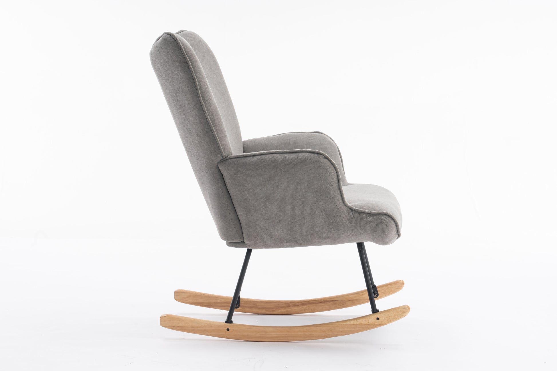 Take a moment to consider this rocking chair, designed to meet your aesthetic preferences while providing a space for complete relaxation. Crafted with a stable framework of solid and manufactured wood, this chair ensures enduring stability. Ideal for any open corner, its versatile design and solid wood frame make it a seamless addition to various spaces. Enjoy the timeless and elegant appearance, complete with supportive wingback design, foam-filled cushions and a touch of sophistication through the contrasting natural finish and microfiber upholstery.